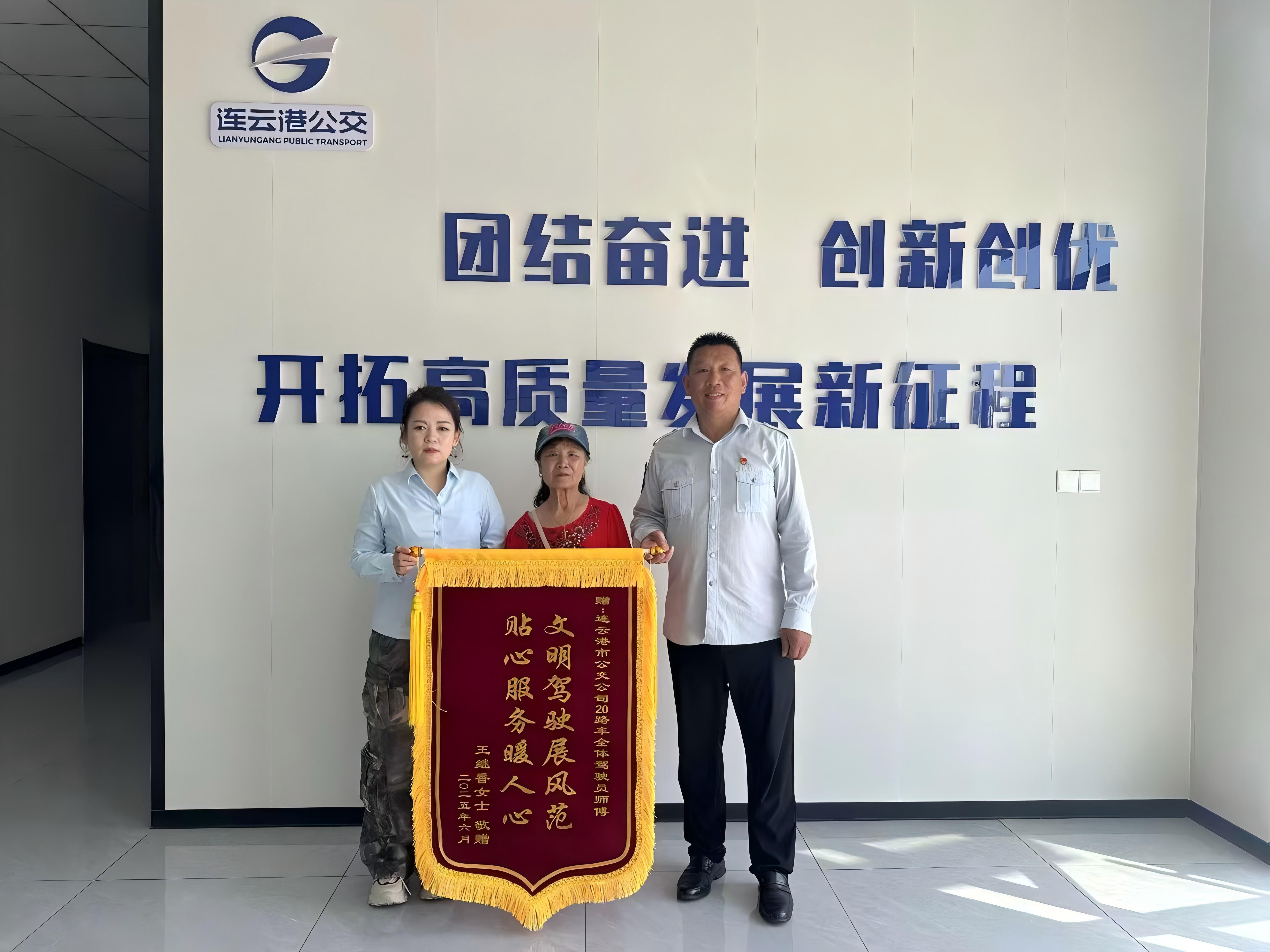 “幾百多次??浚銈兇未味枷翊H人一樣待我,這點(diǎn)心意,也替我們?nèi)w老年乘客捎上”王阿姨枯瘦的手與一雙雙厚實(shí)的手掌緊緊相握,那錦旗上“文明駕駛展風(fēng)范 貼心服務(wù)暖人心”的金字映著暖陽(yáng),竟也如人心一般灼灼閃光。
