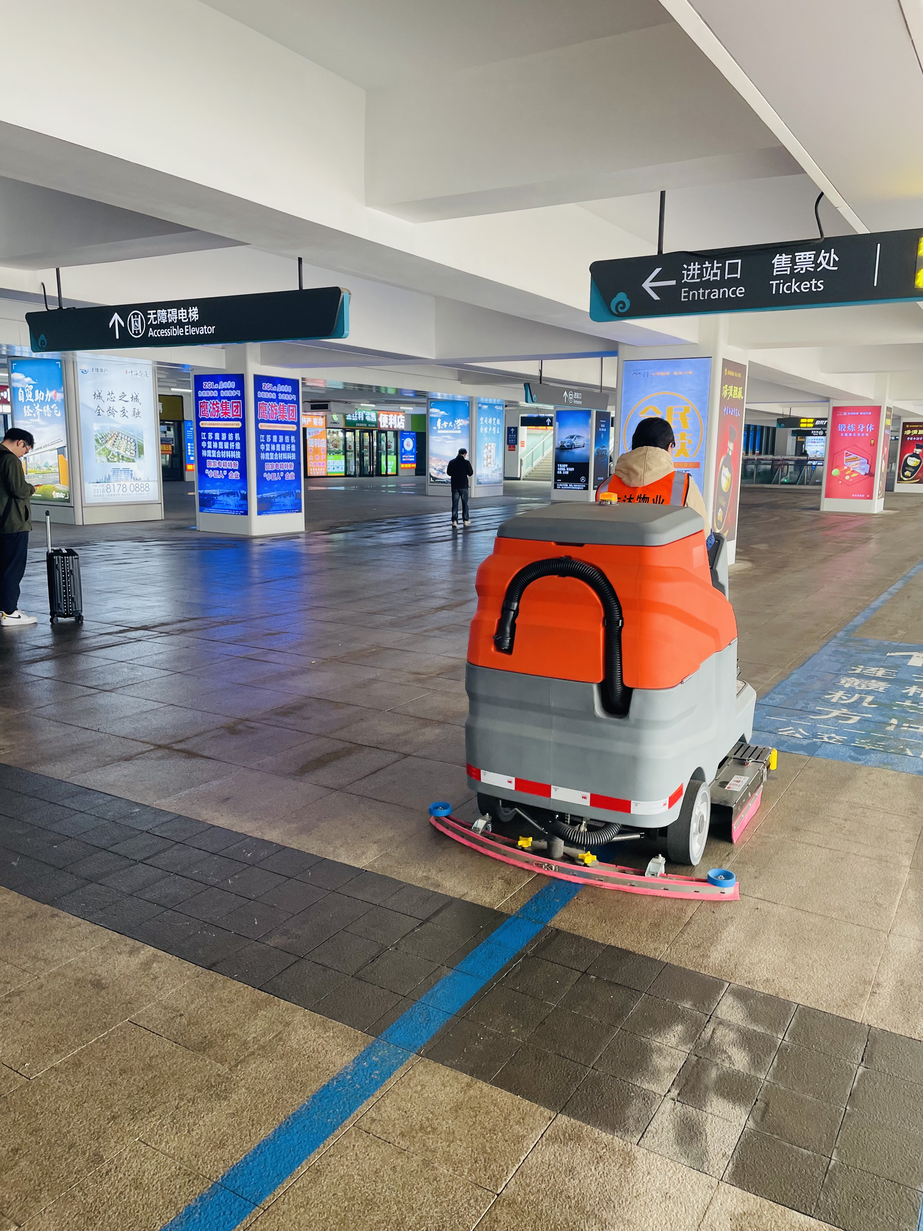 自3月18日以來,新購置的2臺洗地機,每天對出站口地面進行清洗,每日清洗600㎡,60名保潔人員分布在地下停車場、出站口、站前廣場等重點區(qū)域,全天候保障地面、綠化帶環(huán)境衛(wèi)生。交通集團綜合客運樞紐事業(yè)部工作人員全域不斷巡查,及時整改,三天內(nèi)更換15套標(biāo)識指示牌、150余塊破損地磚,以細節(jié)保實效,確保城市窗口溫馨有序。