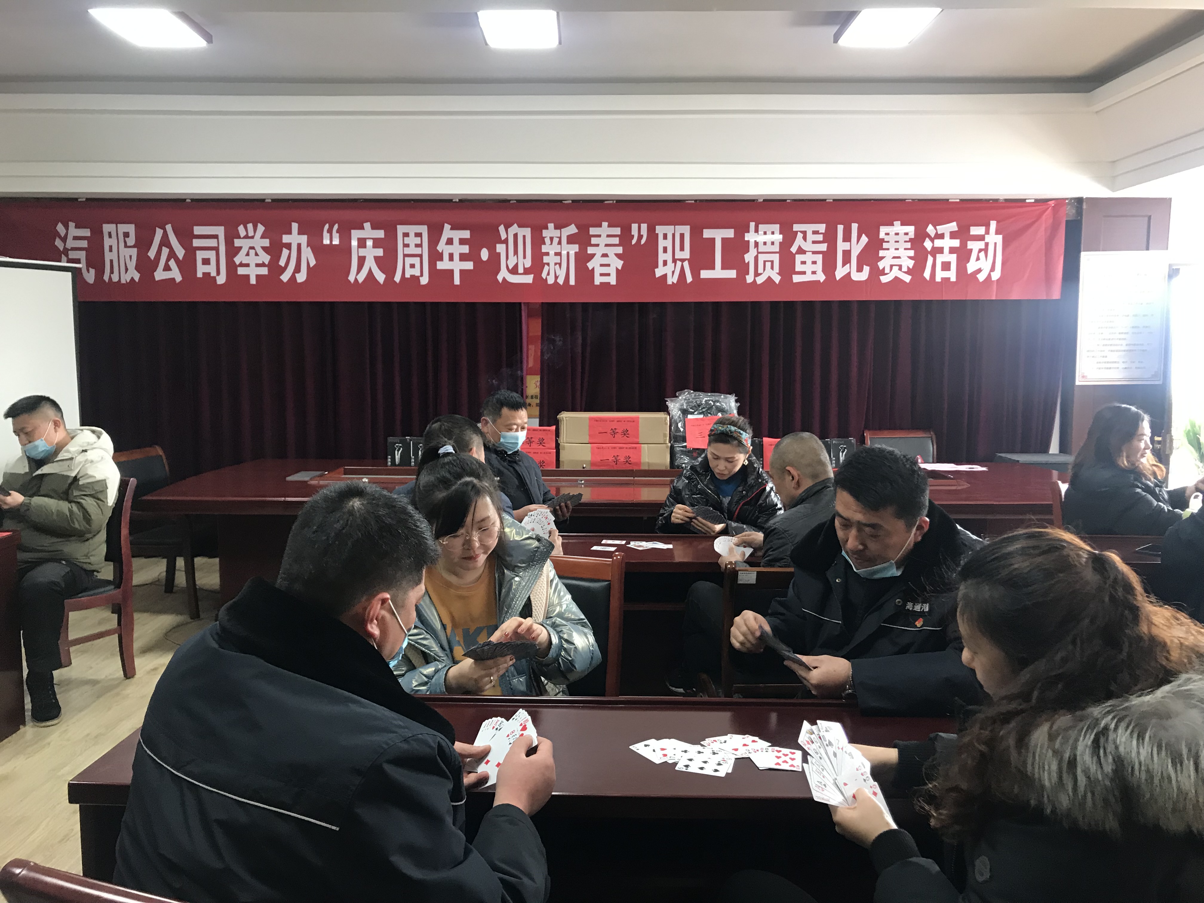 玉鼠報(bào)喜辭舊歲,金牛納福共迎春!為慶祝汽服公司成立八周年及迎接2021年新年的到來(lái),公司工會(huì)于2月10日在會(huì)議室舉辦了“慶周年·迎新春”職工摜蛋比賽活動(dòng)。在公司黨委、總經(jīng)理室的大力支持下,在疫情防控的要求下,公司工會(huì)組織了24名干部職工戴好口罩、做好體溫監(jiān)測(cè)參與此次活動(dòng)。