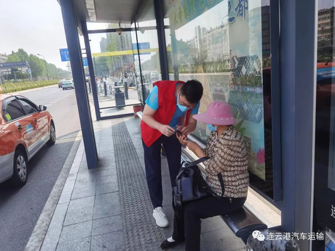 “十一”黃金周首日,夏炎和同事們穿上志愿者的紅馬甲,早早趕到連云港市火車站602路、603路發(fā)車區(qū)前,開始了一天的工作?;疖囌镜目土髁看螅粫r(shí)會(huì)有從高鐵上下來轉(zhuǎn)車的乘客,夏炎需要在公交車門前協(xié)助駕駛員查驗(yàn)乘客的健康碼、行程碼、為乘客測(cè)量體溫,遇到攜帶危險(xiǎn)品、未佩戴好口罩的乘客需要進(jìn)一步勸導(dǎo)。不會(huì)使用健康碼、行程碼的老年人,夏炎便不厭其煩的幫助解決。遇到老弱病殘?jiān)械刃袆?dòng)不便的乘客,夏炎總能給予很多的關(guān)心,他的舉動(dòng)經(jīng)常受到乘客的好評(píng)。