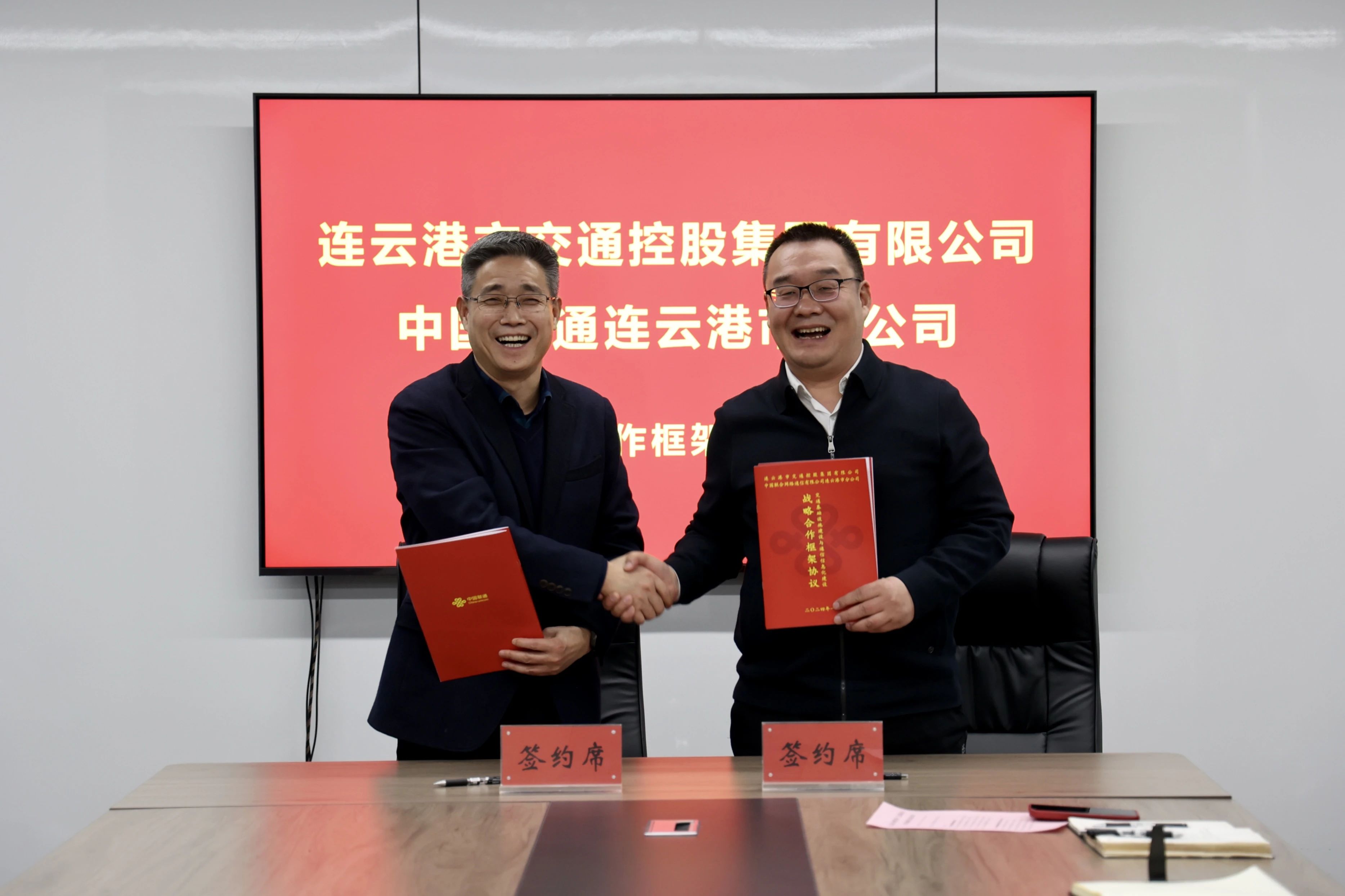 1月25日下午,市交通控股集團(tuán)與中國聯(lián)通連云港分公司舉行簽約儀式。中國聯(lián)通連云港分公司黨委書記宋文豪,副總經(jīng)理張周華等;市交通控股集團(tuán)黨委書記、董事長仲偉濤,副總經(jīng)理王中永等出席簽約儀式。
