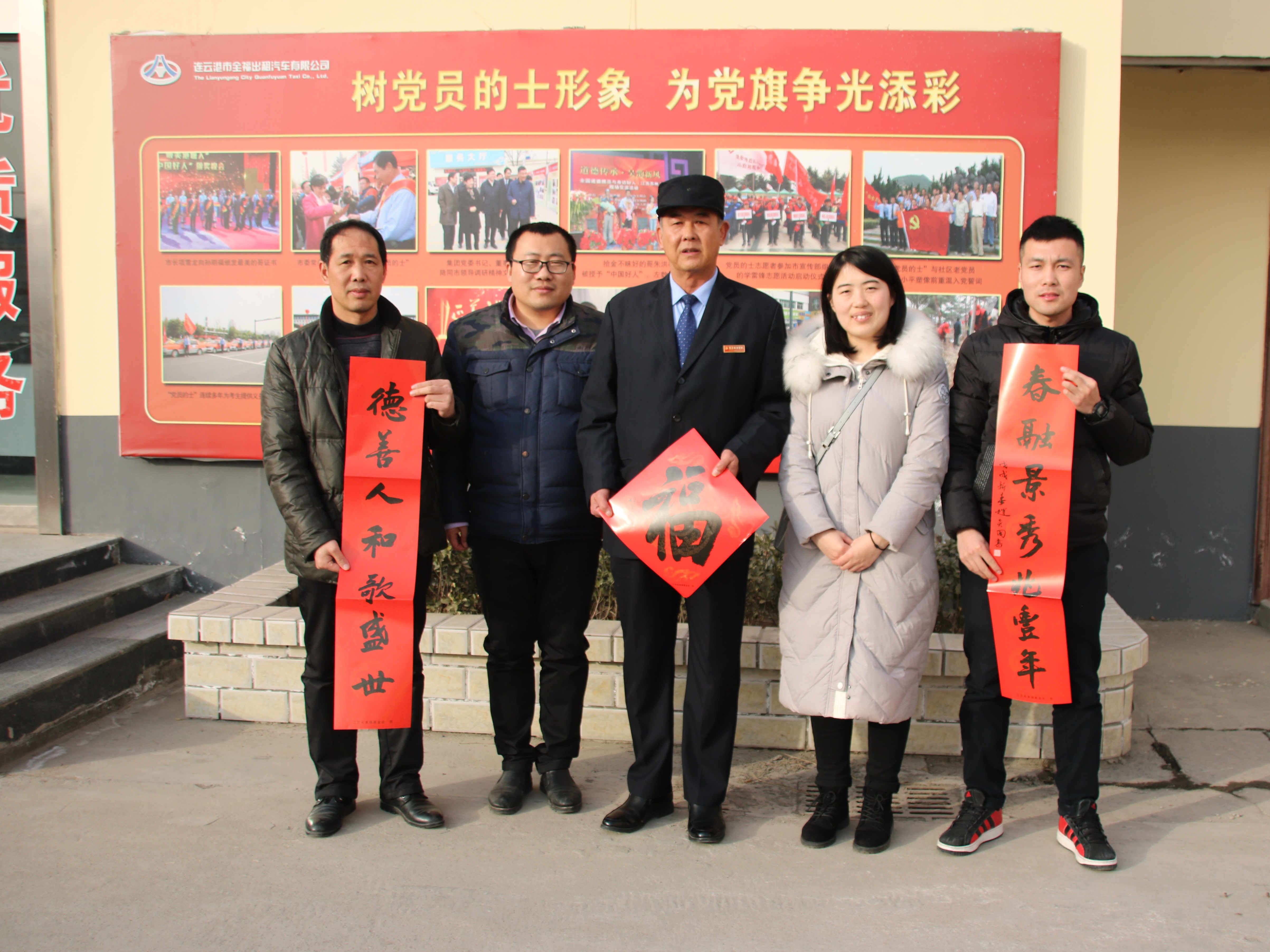 2月10日下午,市文明辦綜合處處長王飛來到全福出租公司看望 “黨員的士”隊(duì)長、“省道德模范”、“省優(yōu)秀志愿者”、“市最美的哥”孫明福,為他送來了由知名書法家書寫的春聯(lián)、福字、米面油等慰問品及慰問金。
