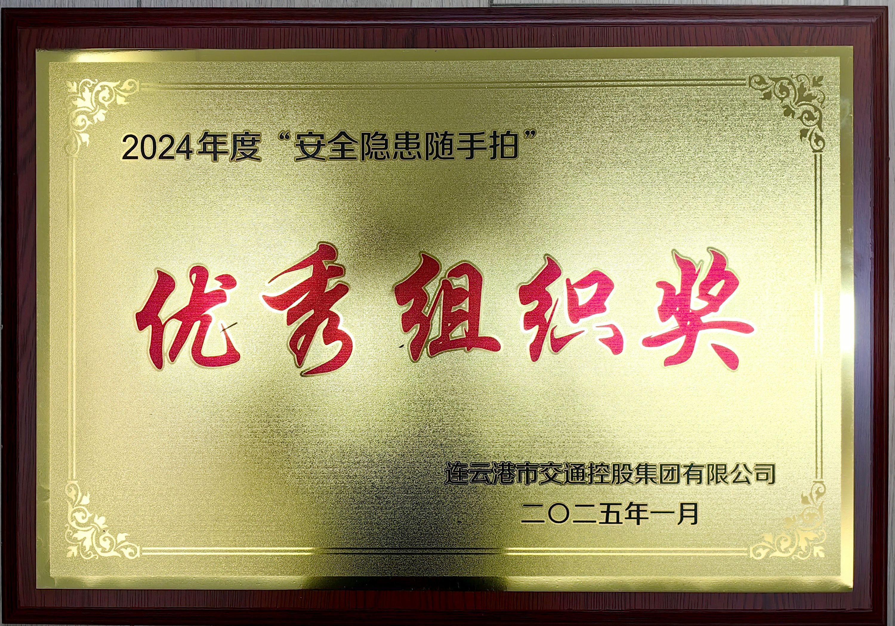 近日,在交通控股集團(tuán)組織的2024年度“安全隱患隨手拍”活動(dòng)中,江蘇海建公司憑借出色的組織工作,榮獲“優(yōu)秀組織獎(jiǎng)”。這一榮譽(yù)不僅是對(duì)海建公司安全管理工作的肯定,更是對(duì)全體員工安全意識(shí)和責(zé)任感的認(rèn)可。