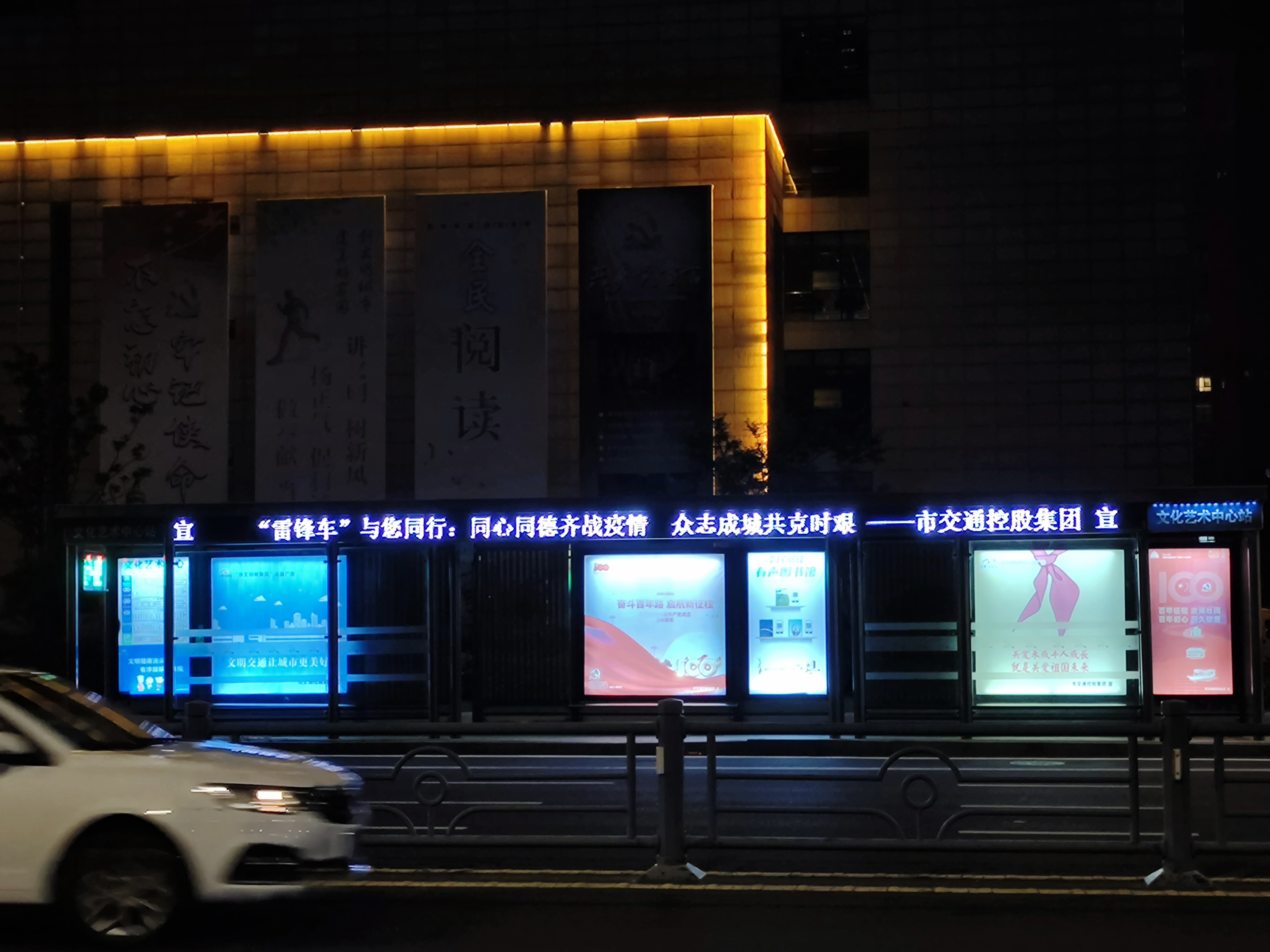 近日,為了廣泛開展“疫情防控 雷鋒車組在行動”活動的宣傳工作,發(fā)揮“雷鋒車”組帶領(lǐng)基層黨組織、共產(chǎn)黨員和志愿服務(wù)者積極投身“防疫”工作的典型示范作用,交通集團深入貫徹交通控股集團疫情防控總體部署,積極主動做好疫情防控氛圍的營造工作,將宣傳標語上刊至全市200個公交站亭LED條屏。