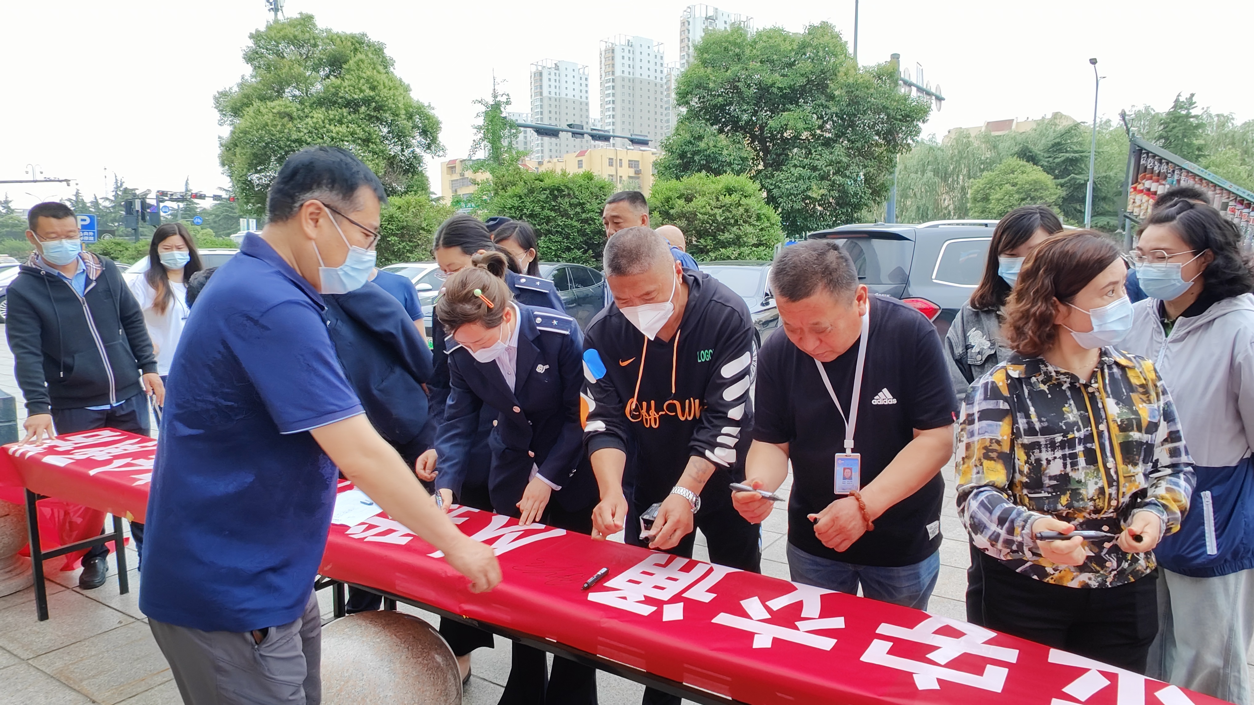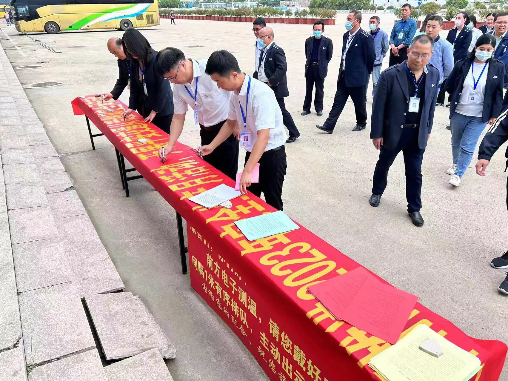 儀式最后,員工在“平安交通,從我做起”橫幅上簽名,以實際行動表明遵章守紀,平安交通,從我做起的決心。