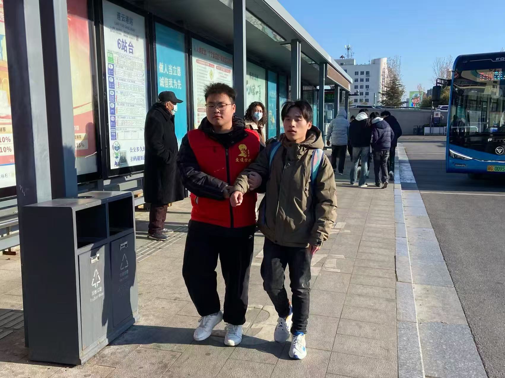 見(jiàn)到旅客,志愿者主動(dòng)上前攙扶,一路耐心引導(dǎo)前行,時(shí)時(shí)輕聲提示腳下路況、細(xì)致描述周邊環(huán)境,用溫暖話語(yǔ)化解旅客身處陌生環(huán)境的不安。從高鐵站出口到公交站臺(tái)的這段路,因志愿者的貼心陪伴變得格外安心順暢。抵達(dá)站點(diǎn)后,志愿者提前與公交司機(jī)溝通,清晰說(shuō)明旅客的下車地點(diǎn)及注意事項(xiàng),小心翼翼將旅客扶至座位,并再三叮囑司機(jī)多加關(guān)照?!坝心銈?cè)冢倚睦锾?shí)多了,出門(mén)再也不犯愁了!”盲人旅客感動(dòng)地連連道謝。