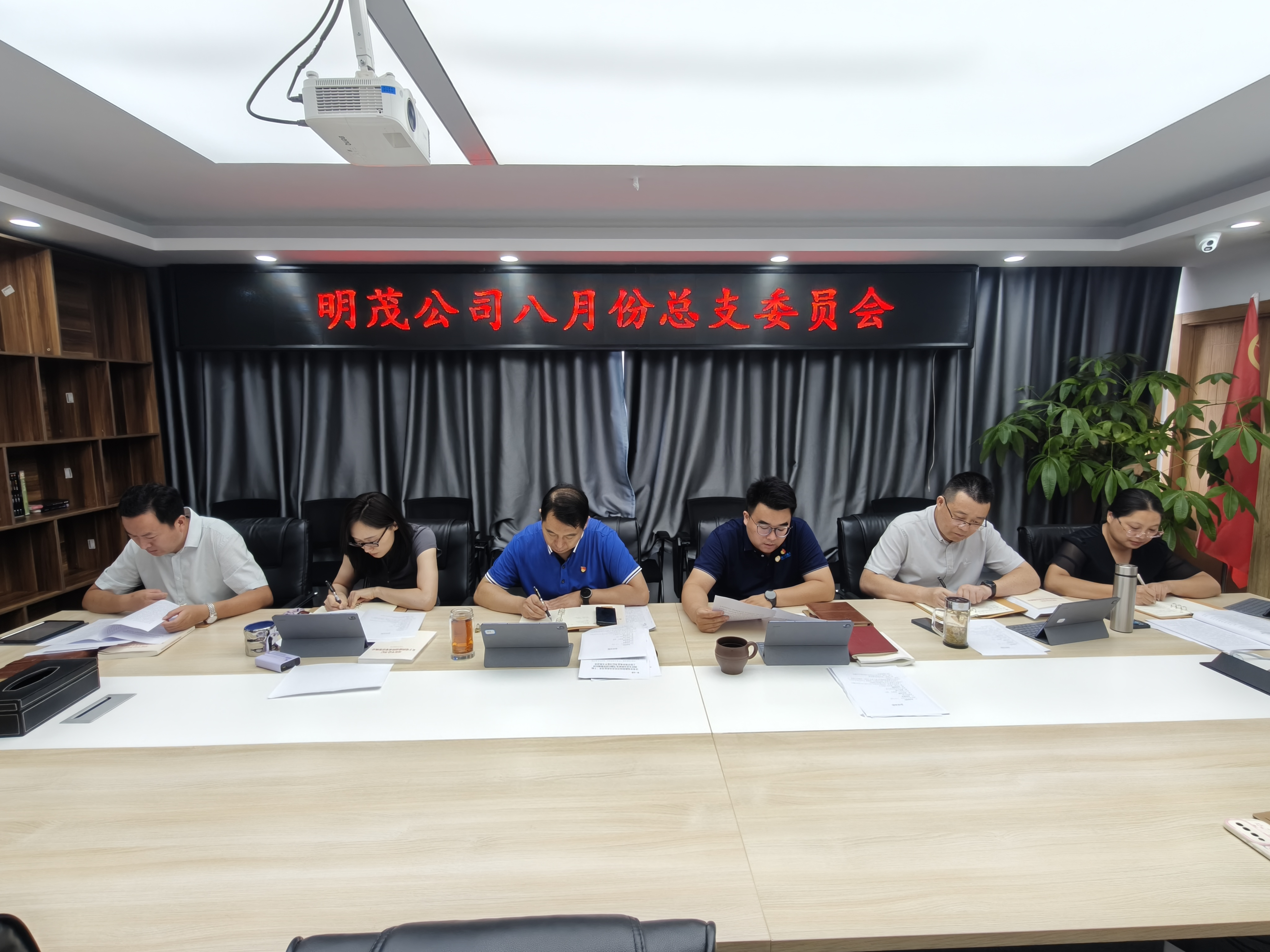 8月8日下午,明茂公司黨總支召開(kāi)8月份總支委員會(huì),傳達(dá)學(xué)習(xí)中共中央政治局會(huì)議精神,部署貫徹落實(shí)工作。會(huì)議由公司黨總支書記、董事長(zhǎng)袁軍同志主持召開(kāi)。明茂公司領(lǐng)導(dǎo)班子成員參加會(huì)議、相關(guān)部門負(fù)責(zé)人列席會(huì)議。