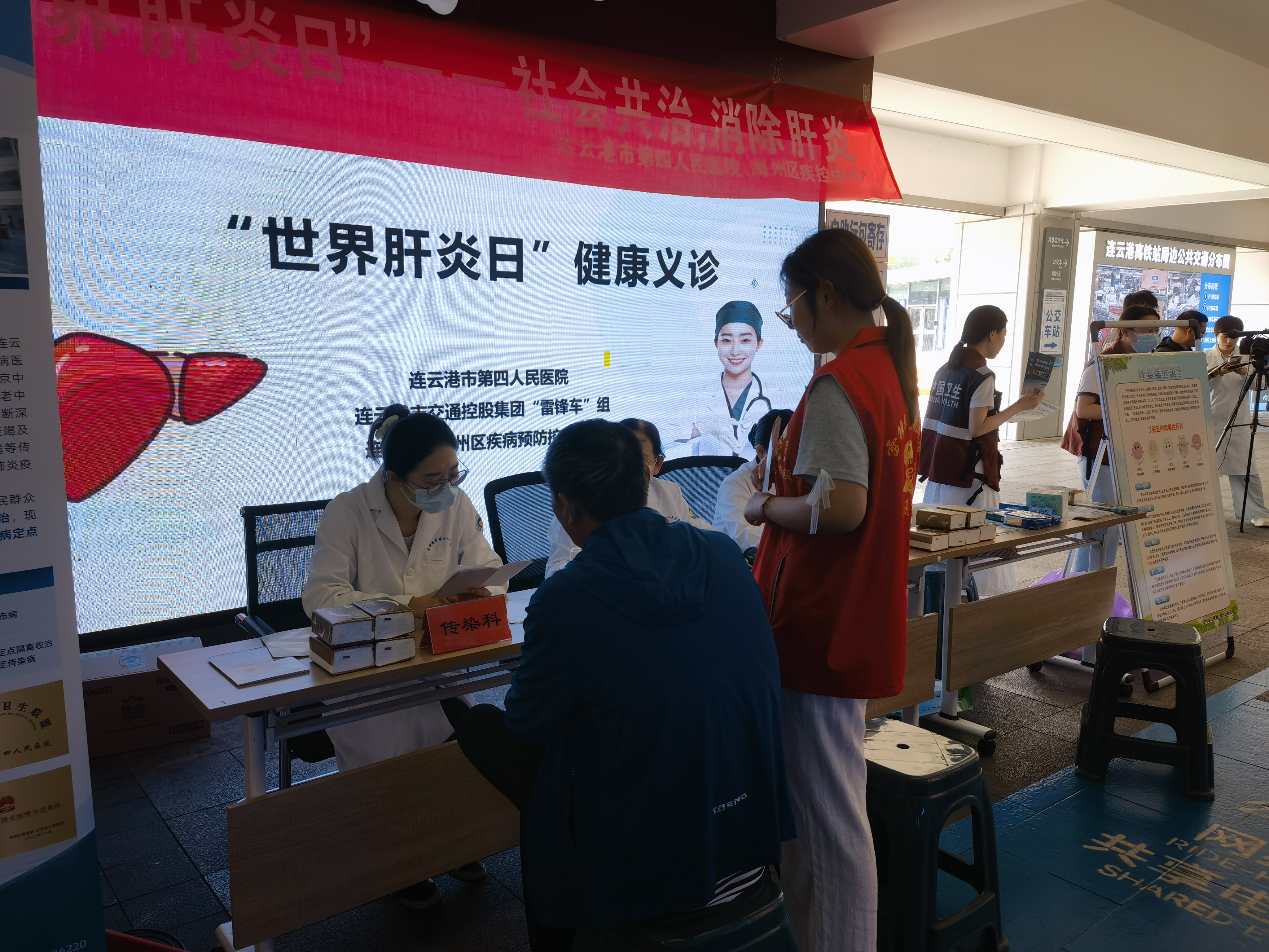 7月28日是第15個(gè)“世界肝炎日”,我國(guó)今年的宣傳主題是“社會(huì)共治 消除肝炎”。為積極響應(yīng)這一主題,提高公眾對(duì)肝炎的認(rèn)知,加強(qiáng)肝病的防治工作,7月25日上午,連云港市第四人民醫(yī)院肝病專家一行五人,攜手連云港市海州區(qū)疾病預(yù)防控制中心、連云港市交通控股集團(tuán)“雷鋒車”組,在連云港市火車東站雷鋒車驛站組織了“世界肝炎日”主題健康義診活動(dòng)。