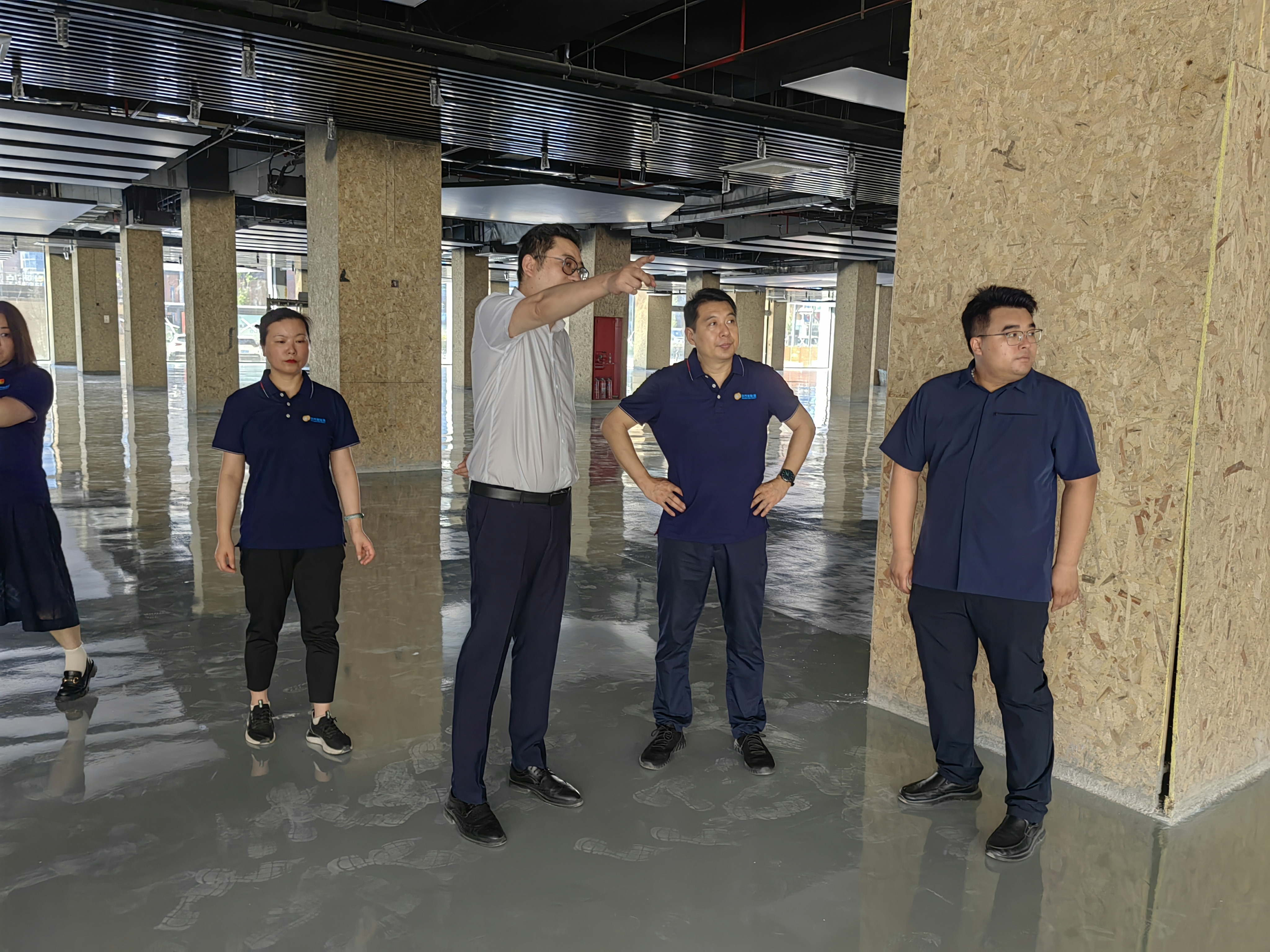 8月8日上午,明茂公司黨總支書記、總經理袁軍帶領班子成員到汽車銷售公司新能源綜合展廳項目建設現(xiàn)場進行檢查指導工作,汽車銷售公司相關負責人陪同檢查。