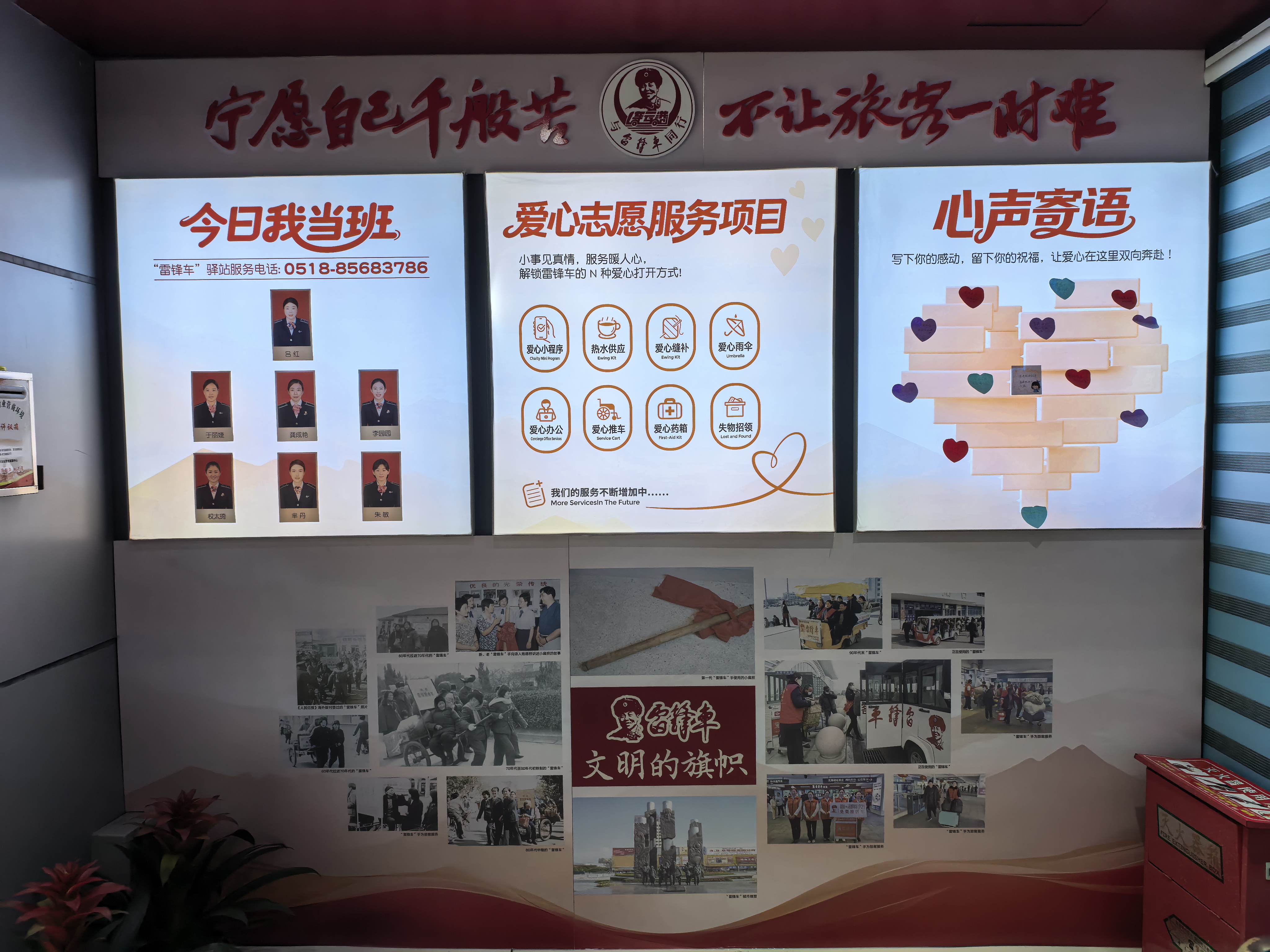 走進(jìn)改造后的“雷鋒車”驛站,溫馨明亮的環(huán)境讓人眼前一亮。驛站特別增設(shè)了“心聲寄語”互動(dòng)區(qū),旅客可以在此留下旅途感受或暖心建議,工作人員將及時(shí)回應(yīng)留言,實(shí)現(xiàn)從單向服務(wù)到雙向互動(dòng)的轉(zhuǎn)變,進(jìn)一步拉近與旅客的距離。一塊醒目的“今日我在崗”公示牌整齊擺放,方便旅客隨時(shí)尋求幫助,讓服務(wù)更透明、響應(yīng)更高效。