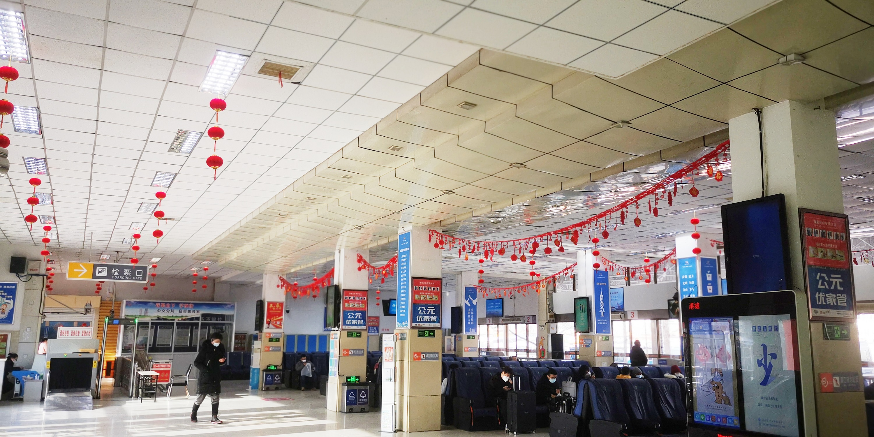 一盞盞火紅燈籠高高懸掛,隨處可見關(guān)于新歲的紅色,是年味在向新春招手。進(jìn)站大廳內(nèi)的新春交通海報(bào),站場通道玻璃上的祥云貼花,出站口的春節(jié)祝福語,雷鋒車驛站的新春布置等各式各樣的迎春裝飾,打造了充滿年味的幸??臻g。
