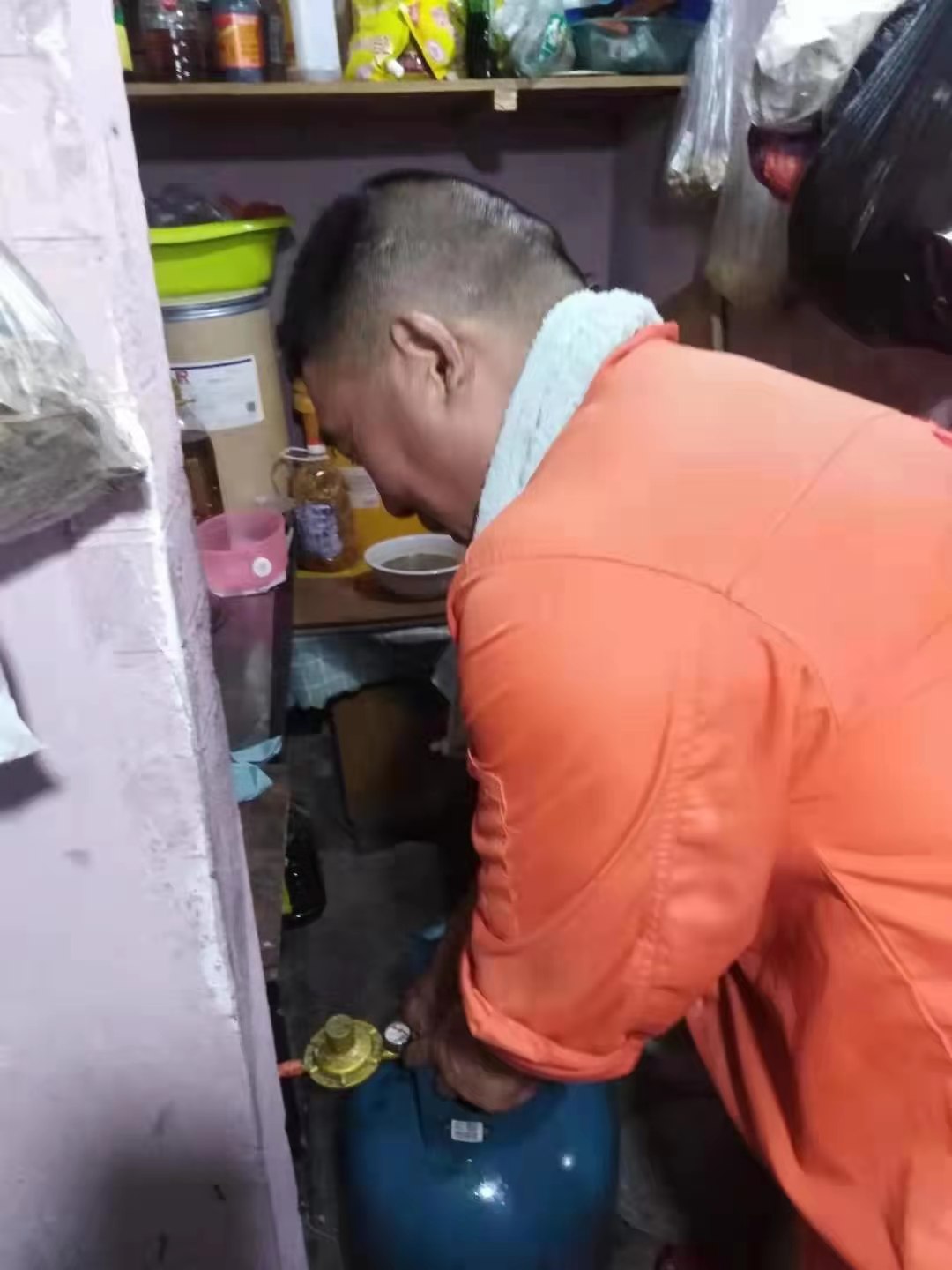 凱瑞液化氣站送氣師傅們到客戶家中,第一件事就是查看客戶家中用氣環(huán)境是否符合規(guī)定,再用液化石油氣檢測儀查看燃?xì)廛浌?、減壓閥等是否存在漏氣現(xiàn)象;軟管是否有老化穿墻現(xiàn)象;空鋼瓶是否在有效期內(nèi)等,最后幫客戶將鋼瓶換好。師傅們一邊檢查,一邊告知客戶用氣常識(shí),“廚房窗戶要留縫,用氣要先打開鋼瓶閥門再開灶具開關(guān),用氣結(jié)束后應(yīng)先關(guān)鋼瓶閥門再關(guān)閉灶具開關(guān)……”,每到一戶就這樣重復(fù)著同樣的檢查動(dòng)作,叮囑著同樣的用氣安全常識(shí)。