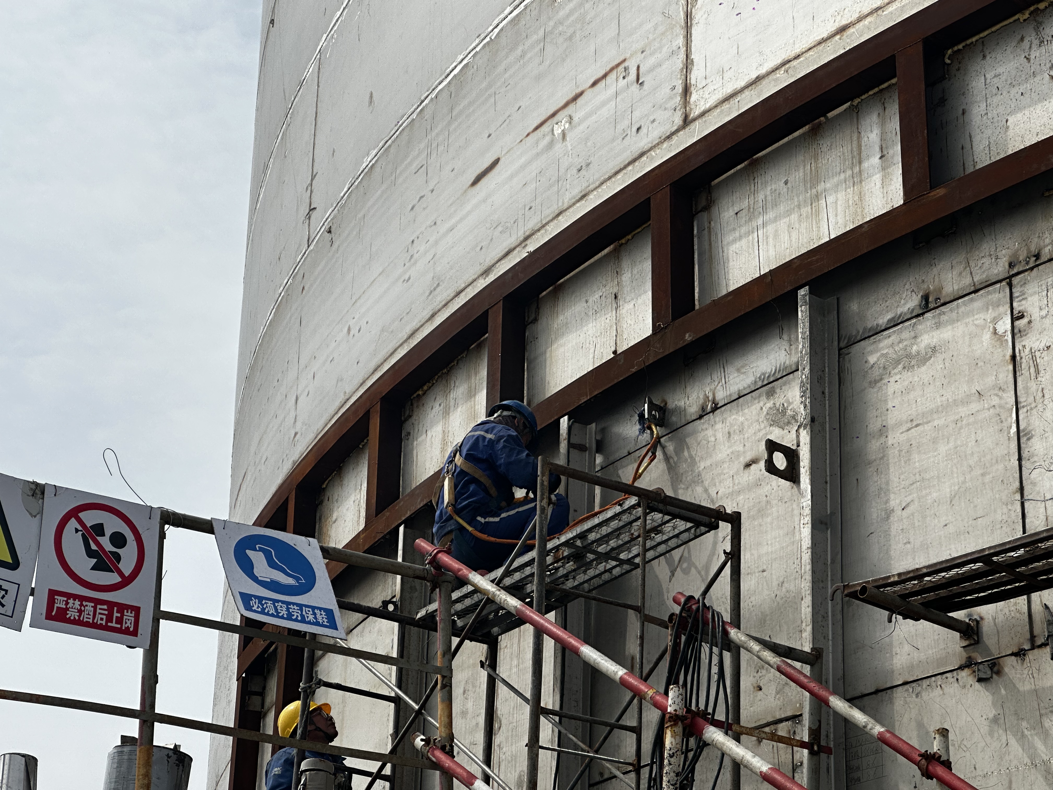3月28日上午,隨著外容器最后一張鋼板焊接完成,交通控股集團(tuán)權(quán)屬物流集團(tuán)LNG儲(chǔ)配站項(xiàng)目20000m3LNG儲(chǔ)罐成功封罐,儲(chǔ)罐安裝工作全部完成,標(biāo)志著LNG儲(chǔ)配站項(xiàng)目正式進(jìn)入了沖刺收尾階段。