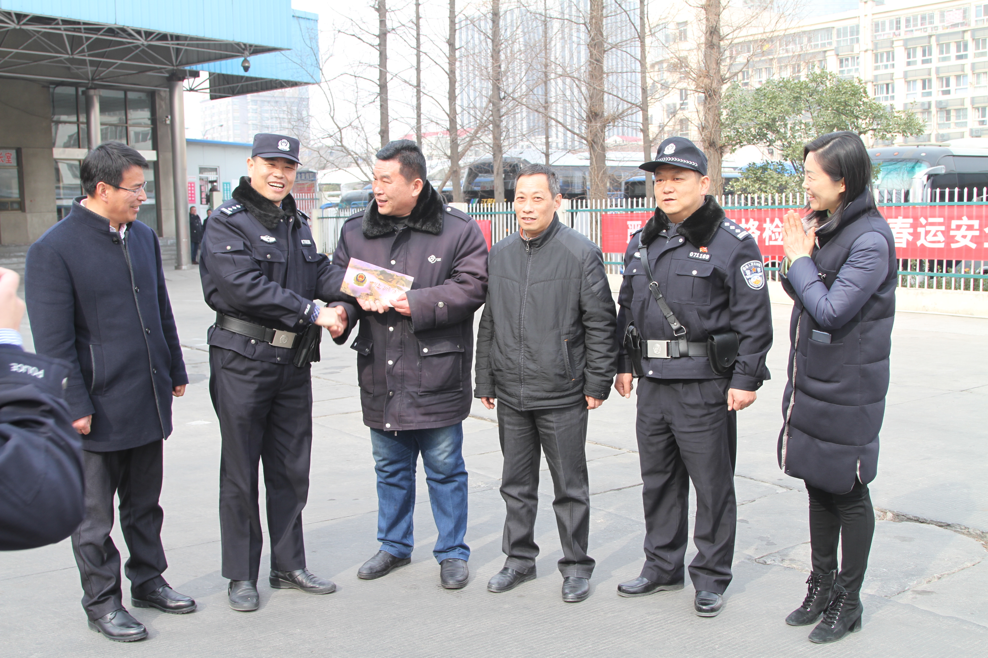 2018年2月14日上午,市公安局公交分局局長張思山攜干警,到汽車公司蘇欣快客站走訪慰問節(jié)日期間工作在一線的職工。