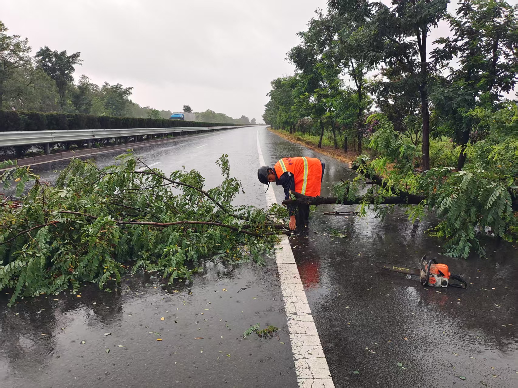 截至7月31日下午5時,豐達公司累計巡查道路700公里,處置路面雜物120處,疏通排水52處,清理倒伏樹木56棵,有效確保了國、省干線及高速公路的安全暢通。