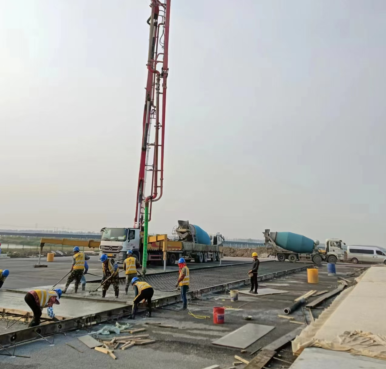為確保本次混凝土順利澆筑,板橋基地商混站聯(lián)合項(xiàng)目部進(jìn)行技術(shù)交底,并全程跟蹤混凝土試塊制作、坍落度試驗(yàn),以保證混凝土質(zhì)量。目前,已圓滿(mǎn)完成連宿高速(徐圩至灌云段)21標(biāo)主線(xiàn)收費(fèi)站混凝土板塊首件澆筑任務(wù)。