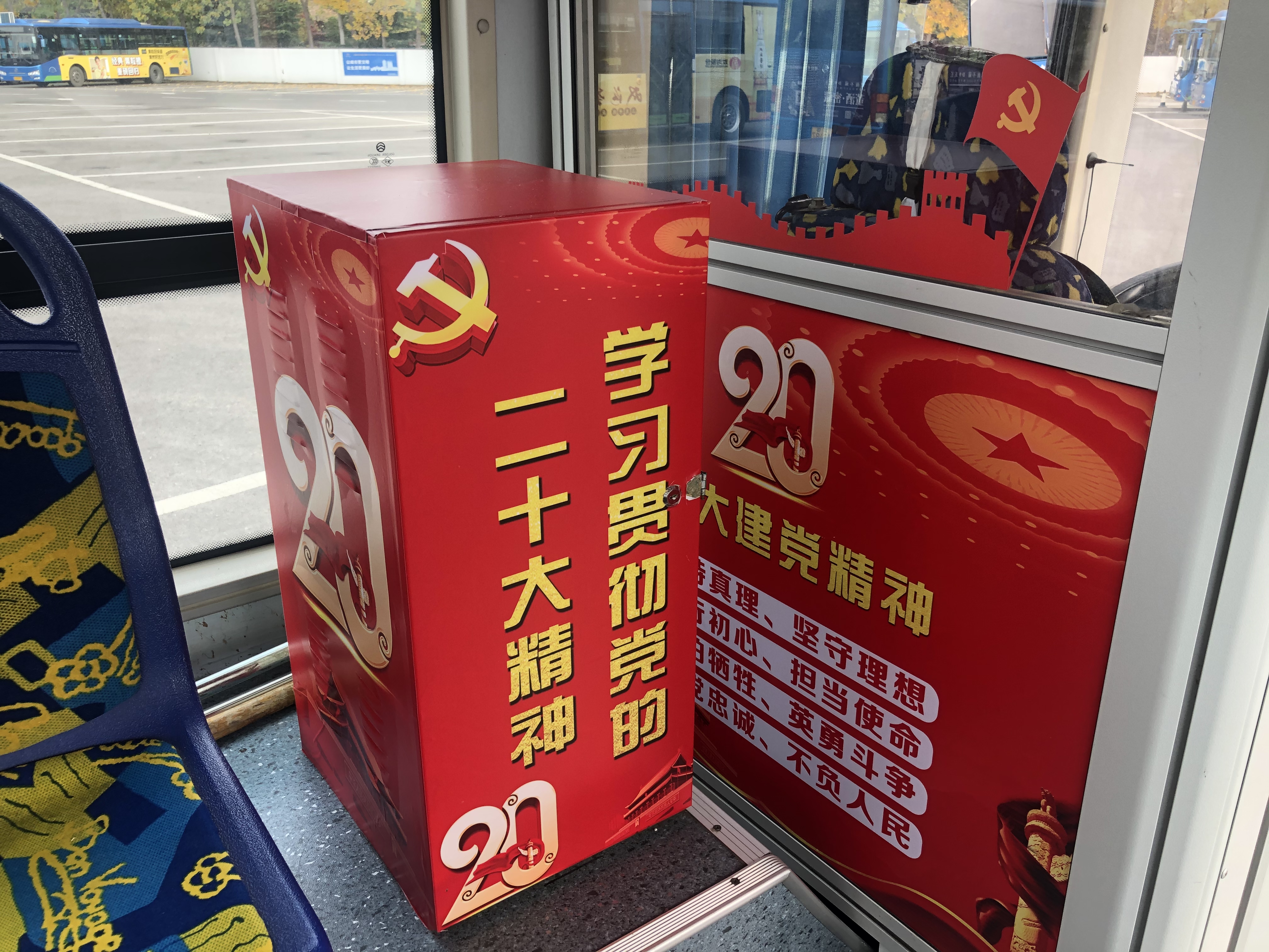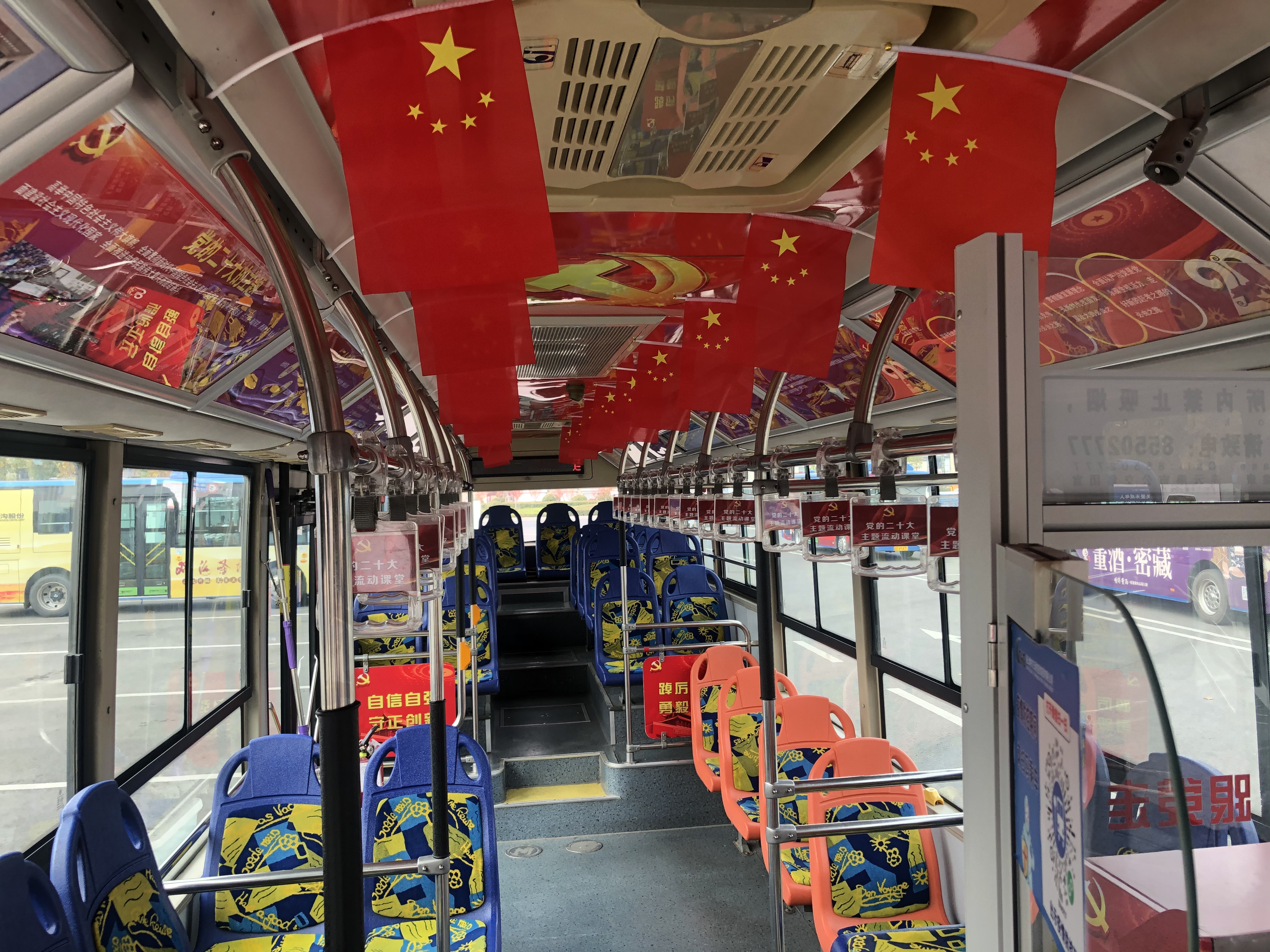 在暨2021年建黨百年“紅色黨史”主題車廂的基礎(chǔ)上,今年公交事業(yè)一部黨支部緊緊圍繞黨的二十大為宣傳主線,充分結(jié)合當(dāng)前工作實際,在持續(xù)深化黨史學(xué)習(xí)教育的同時,以公交20路為紅色宣傳載體再發(fā)力,分別將車身廣告及車內(nèi)展板進行更新升級,以黨的二十大報告為主要宣傳內(nèi)容,打造了主題會議型車廂。