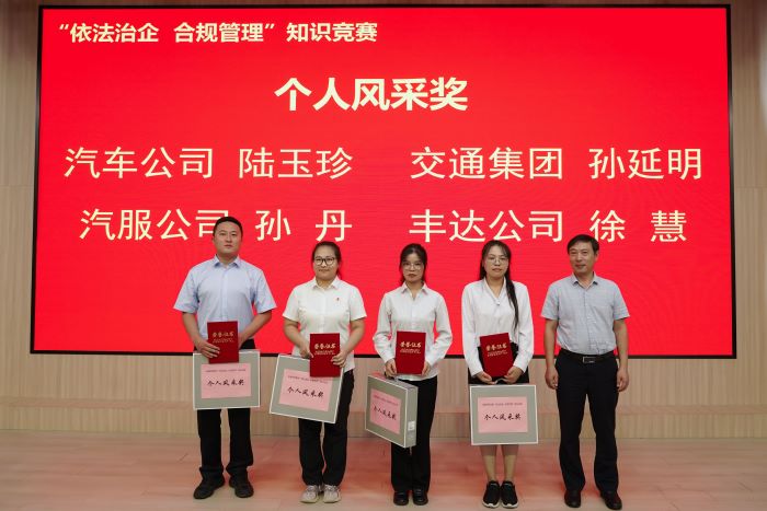8月20日,汽服公司在交通控股集團(tuán)舉辦的“依法治企 合規(guī)管理”知識(shí)競(jìng)賽中脫穎而出,以?xún)?yōu)異的成績(jī)榮獲二等獎(jiǎng)和個(gè)人風(fēng)采獎(jiǎng)。此次競(jìng)賽不僅展現(xiàn)了汽服公司強(qiáng)大的團(tuán)隊(duì)凝聚力和員工們的專(zhuān)業(yè)素養(yǎng),更彰顯了公司在依法治企、合規(guī)管理方面的堅(jiān)定決心和顯著成效。