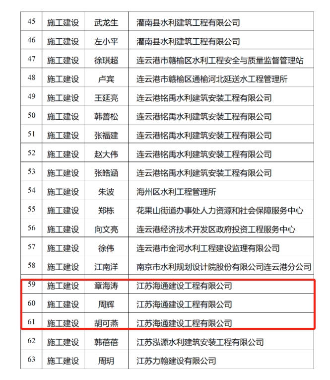 近日,海建公司2024年度水利工程專業(yè)中級(jí)職稱申報(bào)工作圓滿完成。本次職稱申報(bào)者為章海濤、周輝、胡可燕三人,經(jīng)報(bào)送、評(píng)審、考試考核最終全部通過并取得相關(guān)專業(yè)資格。