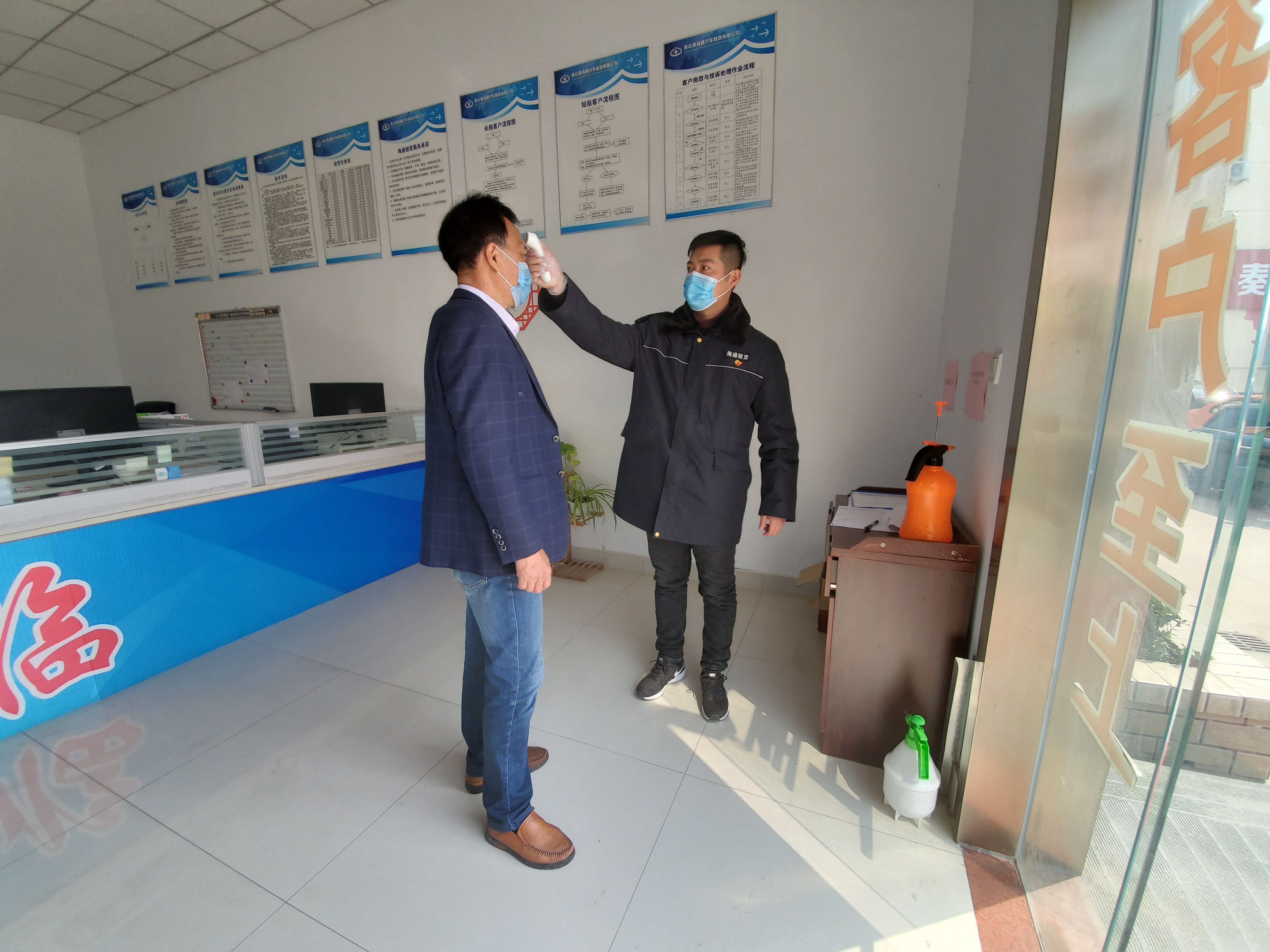 3月18日,因業(yè)務(wù)需要,租賃公司運(yùn)營中心調(diào)度調(diào)配已經(jīng)復(fù)工的外協(xié)車輛蘇GE799Z及駕駛員楊師傅,安排其為客戶出車。租賃公司服務(wù)大廳,在對(duì)外協(xié)駕駛員進(jìn)行測溫后,工作人員與其進(jìn)行信息對(duì)接與健康確認(rèn),包括如實(shí)、準(zhǔn)確填寫車輛信息及其健康情況,檢查外協(xié)駕駛員連易通健康碼,疫情接觸史、目前身體狀況以及近14天同住人員健康狀況等信息,并將其信息錄入公司內(nèi)部系統(tǒng)留存。在公司院內(nèi),工作人員對(duì)即將出車的蘇GE799Z車輛進(jìn)行消毒登記,而這樣的消殺在每次出任務(wù)前都會(huì)進(jìn)行。租賃公司秉著始終為客戶安全負(fù)責(zé)的態(tài)度,用嚴(yán)謹(jǐn)?shù)墓ぷ髯黠L(fēng),切實(shí)保障用車客戶的健康安全。