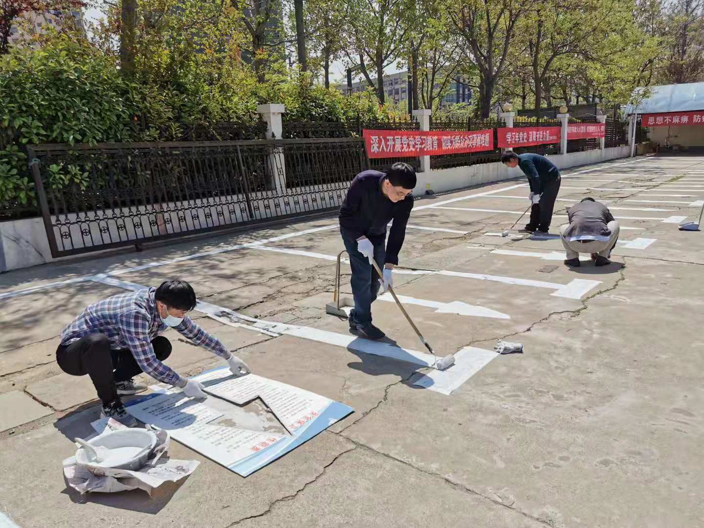 七年來,他們牢固樹立為人民服務(wù)宗旨,牢記一名黨員就是一面旗幟的先鋒理念,用實際行動踐行著“為民辦實事”實踐活動,一件件實事廣受大家好評。不管是冬季結(jié)水成冰、夏季晴天雨天,他們揮汗如雨清掃院內(nèi)垃圾落葉;惡劣天氣頻發(fā)季節(jié),他們清掏下水道淤泥,保持下水通暢,為大家的雨天出行提供方便;院內(nèi)停車場停車線模糊不清,他們放棄休息日重新劃線,既方便了同事們停車,又美化了院內(nèi)環(huán)境,為創(chuàng)文鞏衛(wèi)作出積極貢獻。