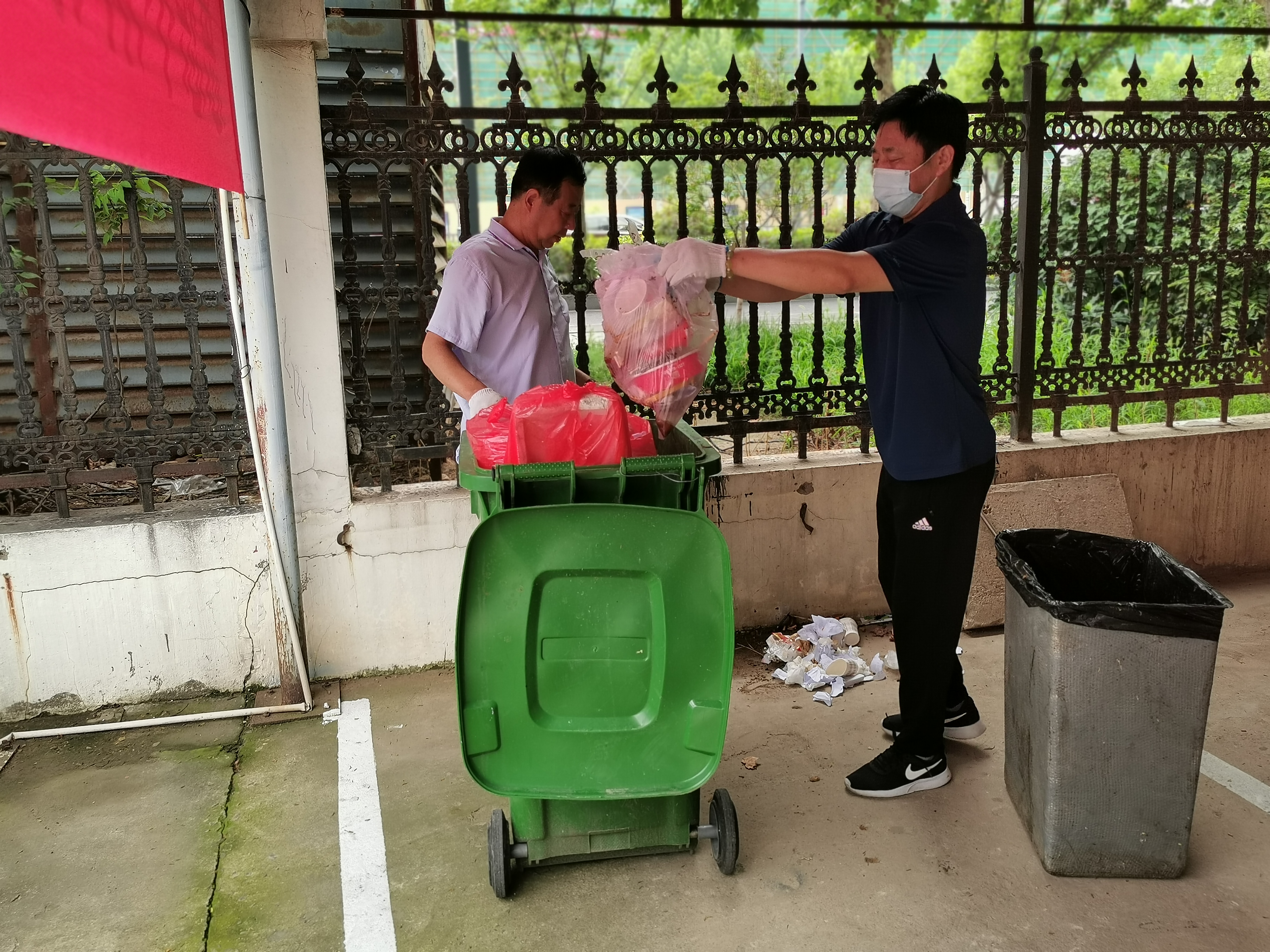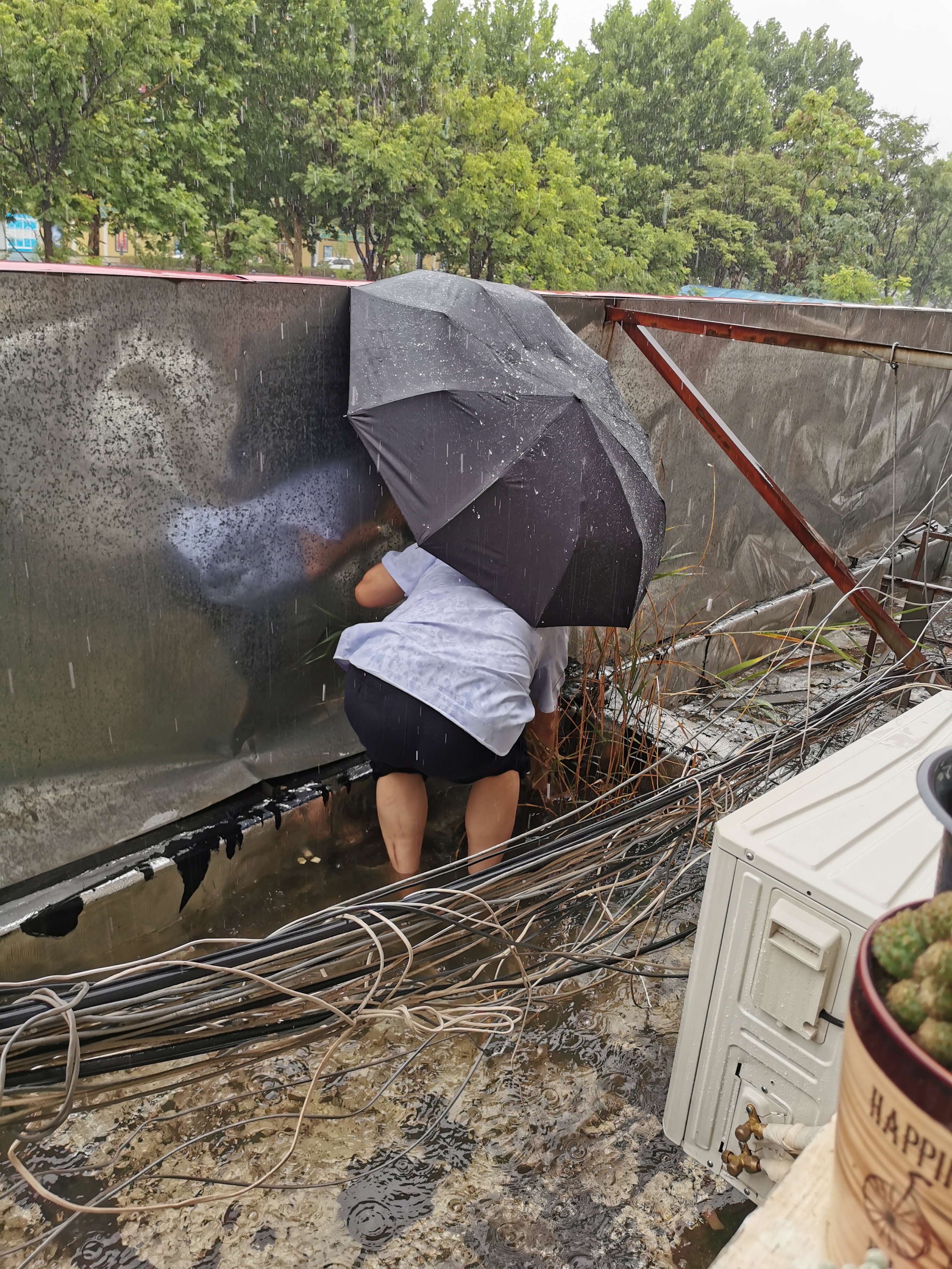 7月14日,對影響院內(nèi)環(huán)境整潔的垃圾物進行集中清理,有效解決了車棚內(nèi)垃圾無人清運等問題,進一步提升了物流集團工作環(huán)境。7月16日,一場急雨襲卷港城,他們發(fā)現(xiàn)一樓屋檐積水嚴重、排水不暢,存在安全隱患。58歲的業(yè)務(wù)科科長范正銀冒著急雨,在確保安全的前提下,從二樓窗戶爬上屋檐,用手一點一點清掏屋檐排水口雜物,確保了排水通暢、消除了安全隱患。
