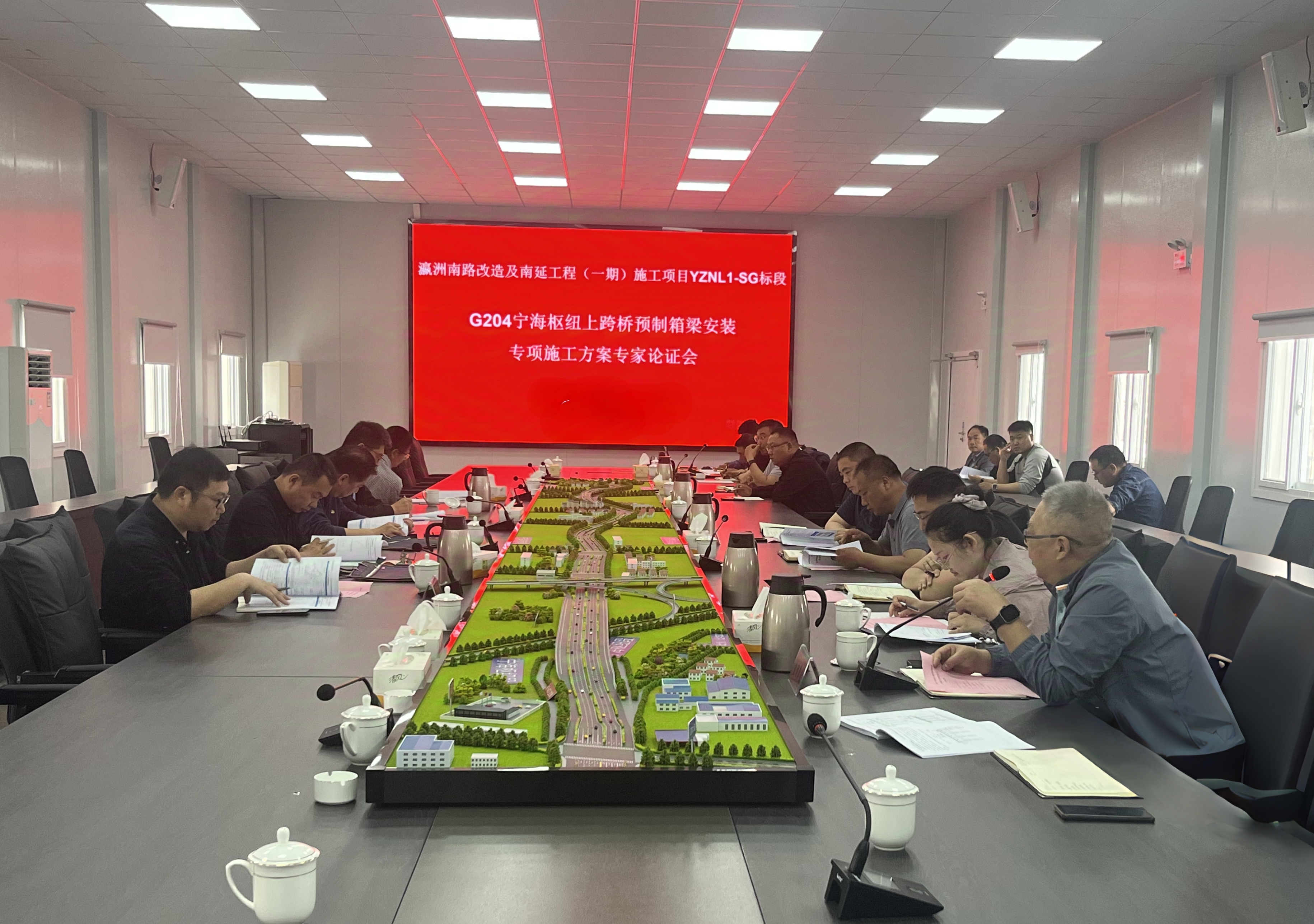 寧海樞紐上跨橋是瀛洲南路南延工程的重要控制性工程,其預(yù)制箱梁的運輸與安裝涉及高空作業(yè)、大件運輸、重型吊裝等高危環(huán)節(jié),施工難度大、安全風(fēng)險高。會上,施工單位詳細匯報預(yù)制箱梁運輸路線規(guī)劃、吊裝設(shè)備選型、安裝工藝及應(yīng)急預(yù)案等內(nèi)容。與會專家結(jié)合工程實際,對方案展開深入研討,一致認為方案內(nèi)容基本齊全、總體可行,并提出針對性優(yōu)化意見:一是進一步完善施工技術(shù)標準及質(zhì)量保障措施,確保箱梁安裝精度;二是細化運輸過程中的交通組織、限高限載管控及動態(tài)監(jiān)測方案;三是嚴格復(fù)核吊裝地基承載力計算及起重設(shè)備選型驗算數(shù)據(jù),強化過程監(jiān)管;四是優(yōu)化應(yīng)急預(yù)案,提升突發(fā)天氣、設(shè)備故障等場景的響應(yīng)處置能力。
