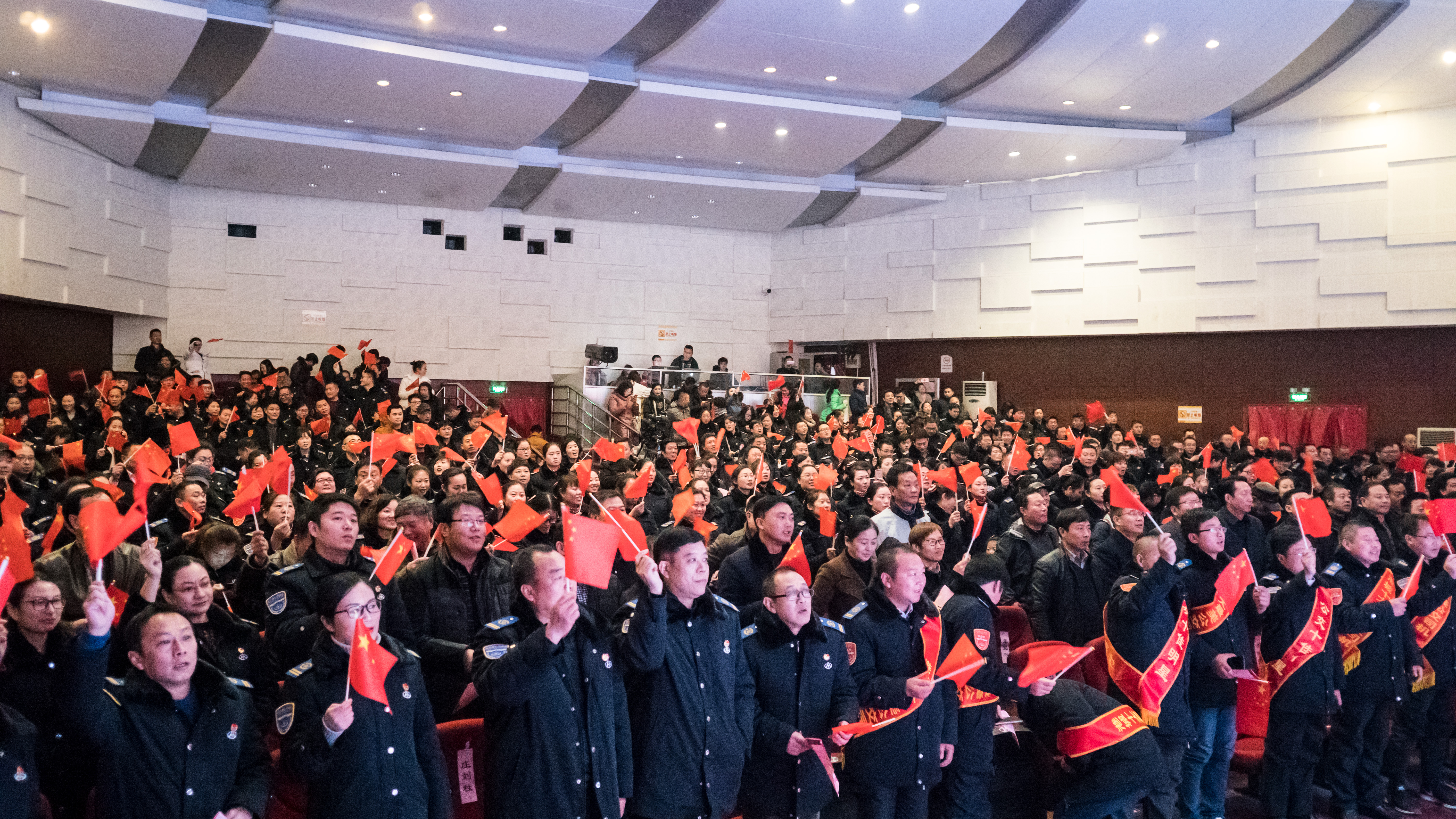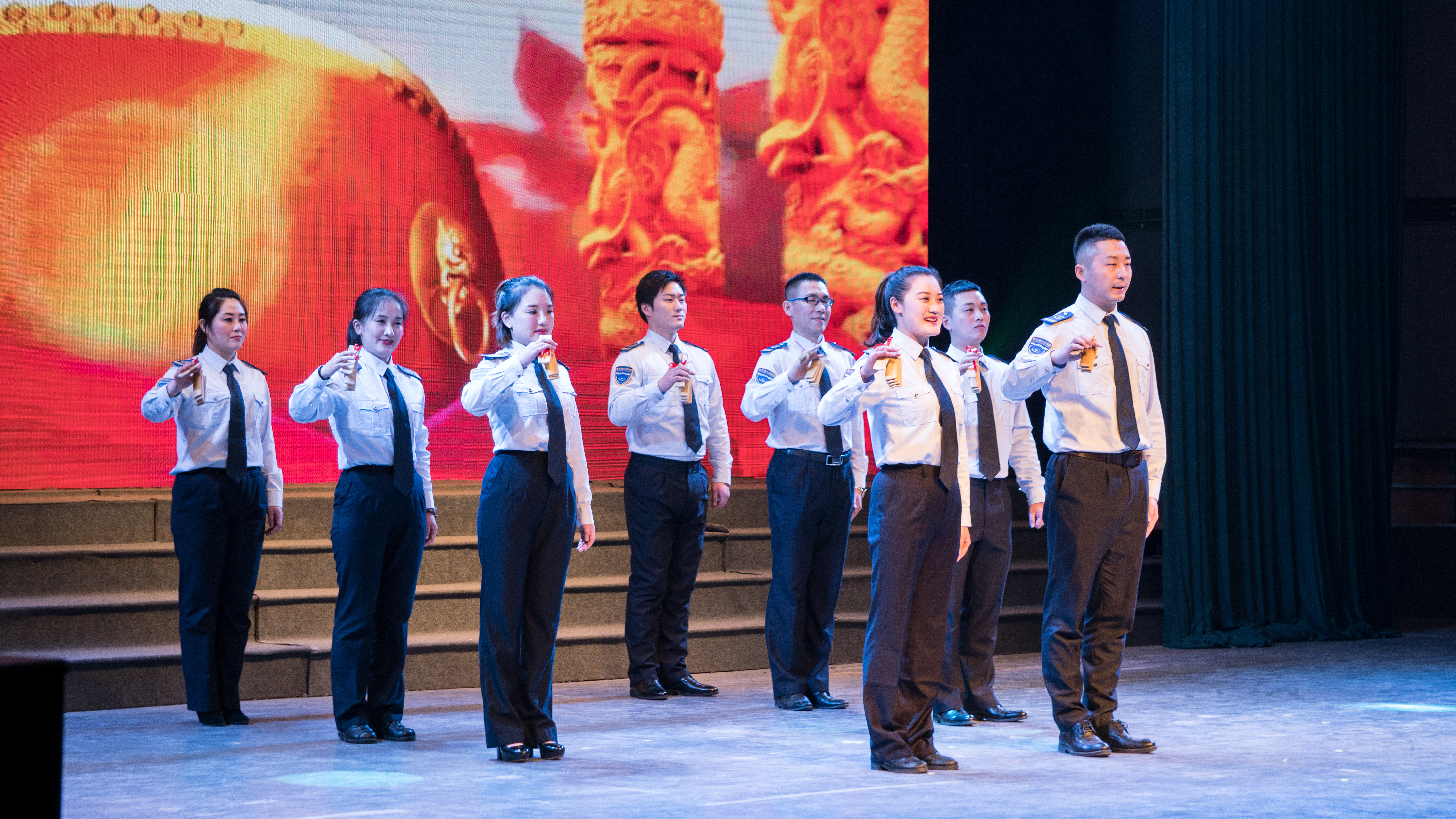晚會開始前,各權(quán)屬單位以飽滿的熱情展開了拉歌活動,歌曲此起彼伏,各單位有備而來,一首首耳熟能詳?shù)母枨粌H僅喚醒了公交集團全體職工的美好回憶,嘹亮的歌聲點燃了在場所有觀眾的熱情,舞動的國旗也將晚會的氛圍烘托地愈加濃厚。