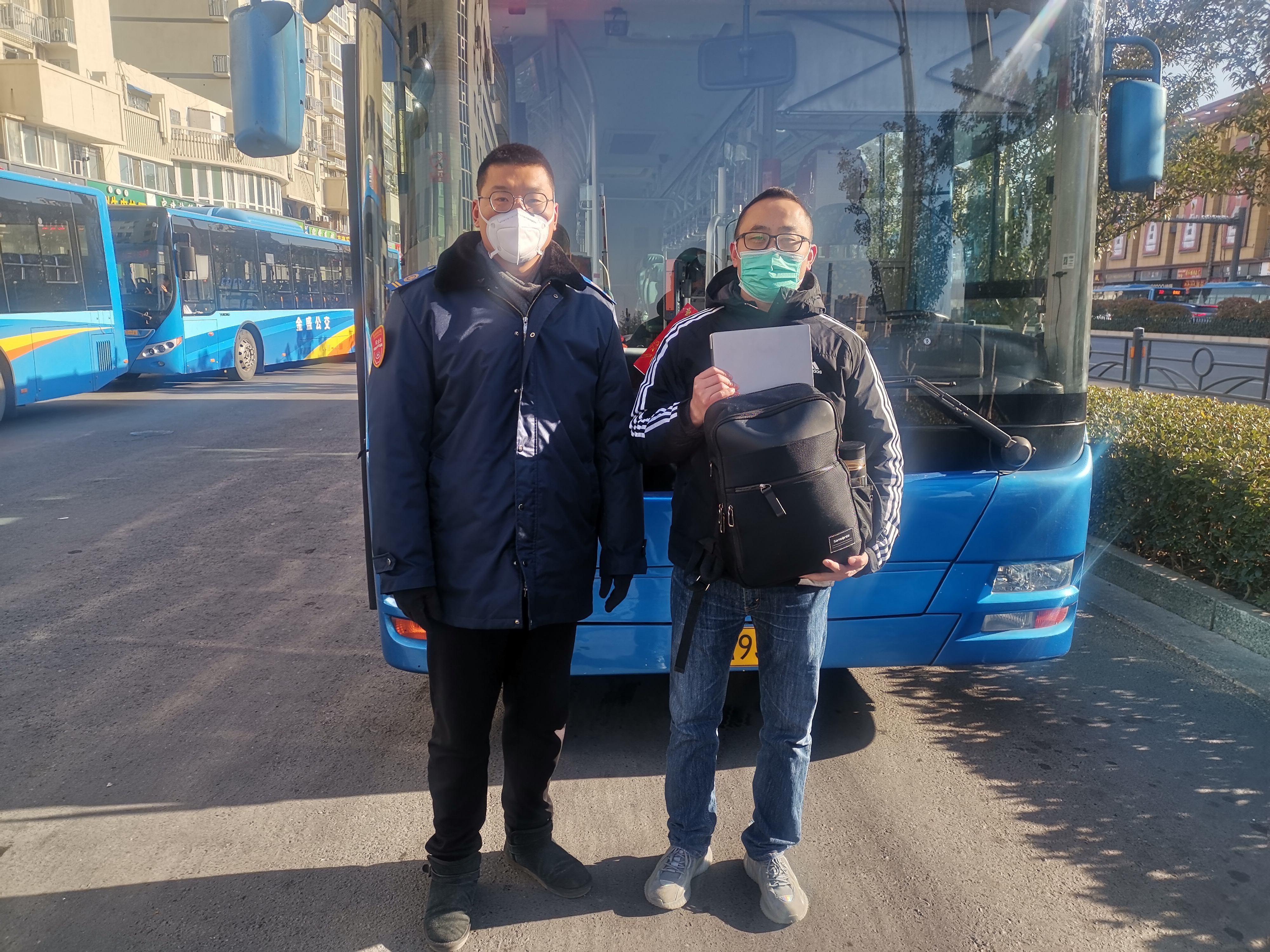過了幾分鐘后,有個(gè)氣喘吁吁的乘客跑來(lái)找包,經(jīng)過了解后得知,失主曹先生是蘇州人,帶著家里人來(lái)連云港旅游,由于帶的行李過多,下車的時(shí)候就忘記拿了最小的包。加上一家人著急趕火車,下車就往火車站跑了。拿手機(jī)看時(shí)間的時(shí)候,才發(fā)現(xiàn)背包沒了,就趕緊往回跑,幸好背包被駕駛員師傅撿到并妥善保管好。因?yàn)楹茼樌卣一貋G失的包,并沒有耽誤過多時(shí)間,趕上了回蘇州的火車。曹先生對(duì)工作人員說:“連云港是個(gè)好地方,這里的風(fēng)景好,人更熱情,春節(jié)期間公交免費(fèi)乘坐,沒想到服務(wù)還這么好,下次還來(lái)這里旅游。”
