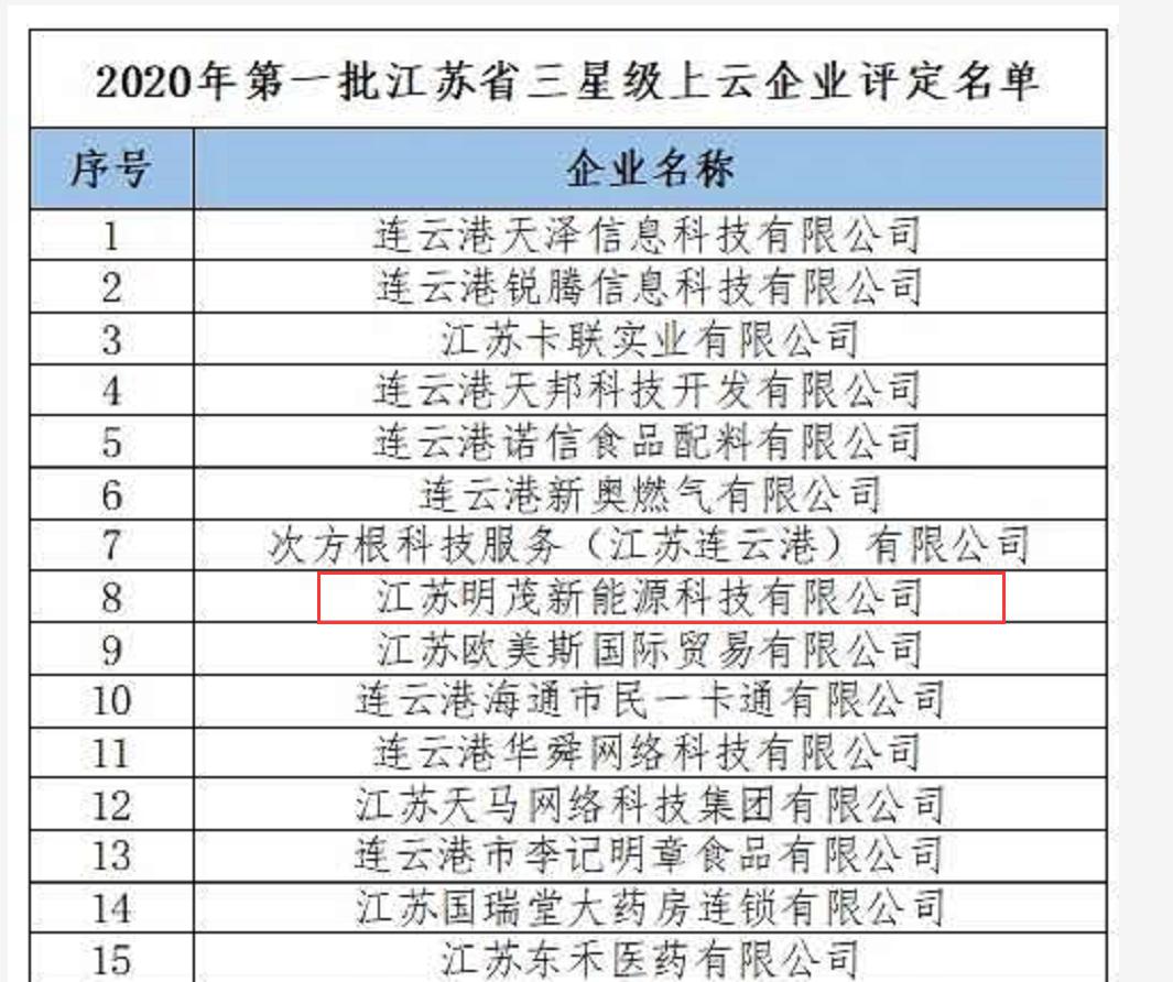 日前,明茂新能源公司順利通過江蘇省三星級上云企業(yè)評定工作。這是該公司落實《省政府關(guān)于深化“互聯(lián)網(wǎng)+先進制造業(yè)”發(fā)展工業(yè)互聯(lián)網(wǎng)的實施意見》和省工信委要求,提升企業(yè)管理結(jié)出的又一成果。