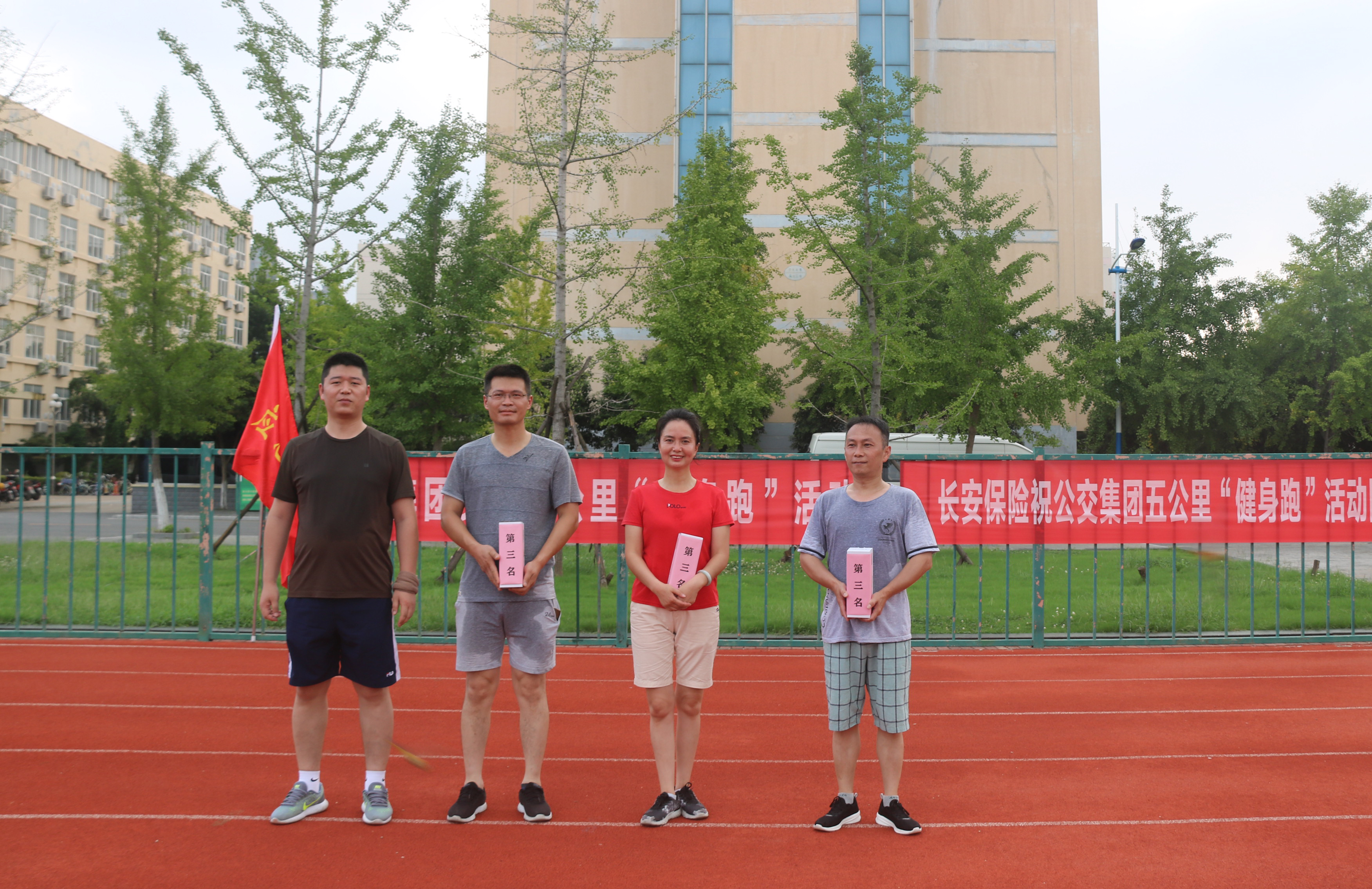 本次拉練賽,賽程共計(jì)5公里(跑道12.5圈),并根據(jù)性別和年齡科學(xué)分組:男子1組(45周歲及以上)、男子2組(45周歲以下)、女子組,每組根據(jù)到達(dá)比賽終點(diǎn)的先后順序依次選出第一名、第二名、第三名;賽事采用統(tǒng)一編號,人工計(jì)時(shí),7名工作人員對指定參賽選手的圈數(shù)記錄及總時(shí)間登記,確保選手成績更加精確;賽前,集團(tuán)在安全保障、醫(yī)療保障、體能補(bǔ)給等方面做了充分準(zhǔn)備,確保拉練賽順利進(jìn)行,本次比賽第一名獎品由長安保險(xiǎn)公司贊助。