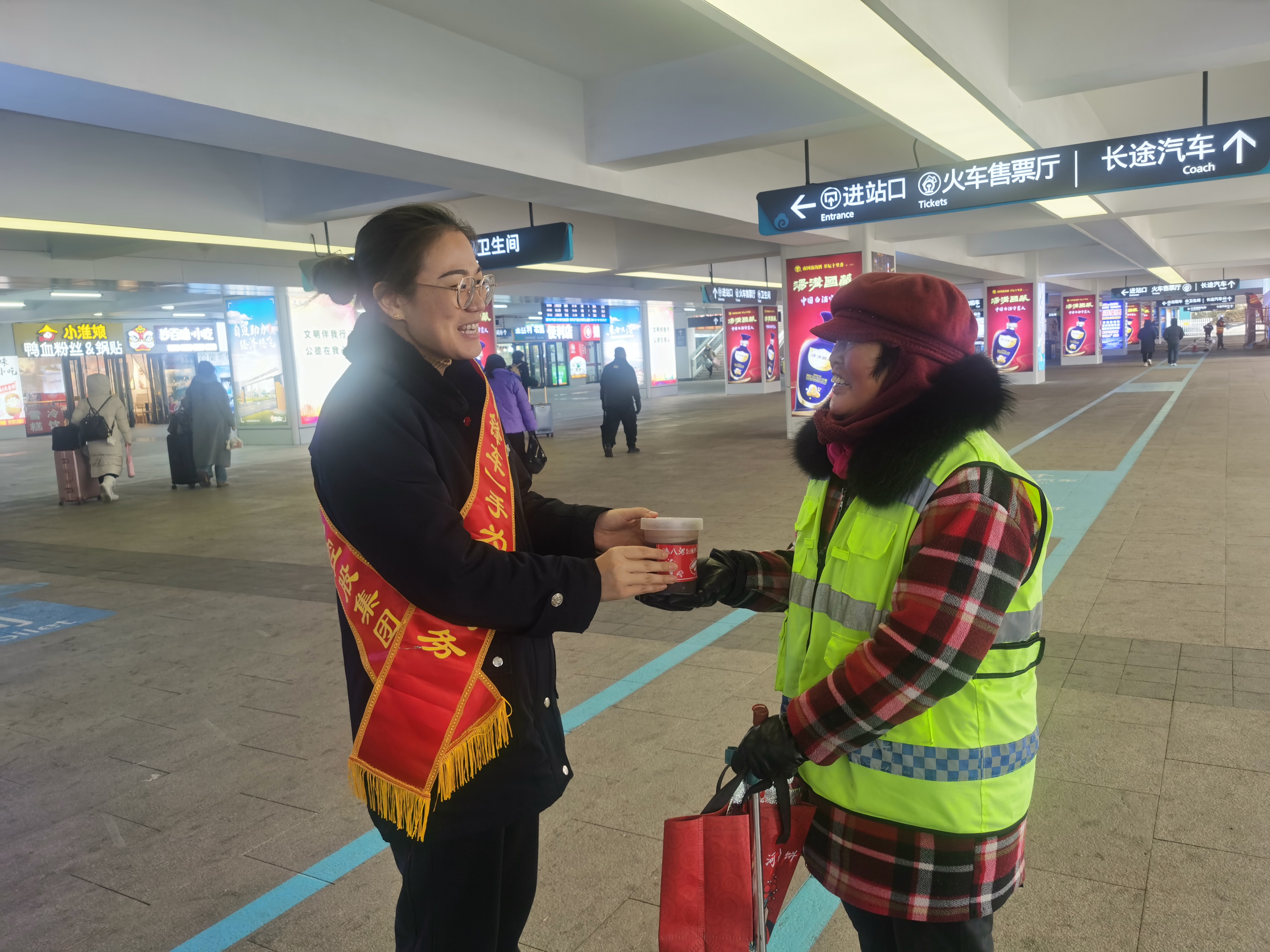 新浦汽車總站“雷鋒車”驛站在這個特殊的節(jié)日,與市城管廣場辦、浦西街道新中社區(qū)工作人員一道,將臘八粥送給來往旅客、一線環(huán)衛(wèi)工人等提前送上新年祝福,讓他們在寒冷的冬日感受到“雷鋒車”手的暖心服務。
