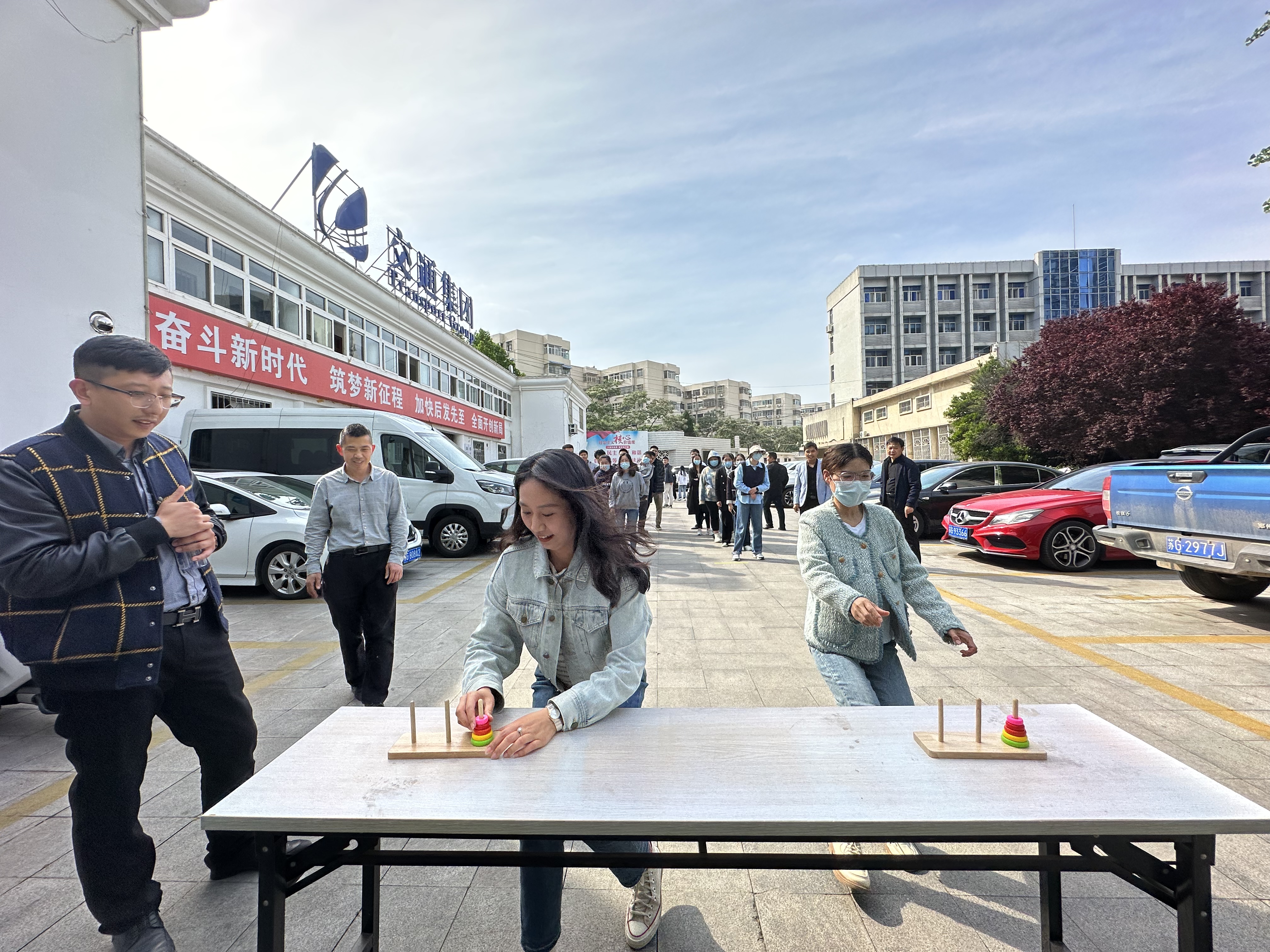 為豐富比賽的形式內(nèi)容,本次主題活動分為疊漢諾塔團隊接力賽、你比劃我來猜和沙包投擲積分賽,采用名次賦分的形式,積分最高的隊伍獲勝。本次活動不僅是團隊協(xié)作的比拼,更是智慧和體力的角逐,在歡聲笑語中,大家你追我趕地奔跑著,互相勉勵、加油鼓勁。在疊漢諾塔團隊接力賽中,一塊塊彩色的圓盤穿梭于青年們的巧手間;在你比劃我來猜進行時,無聲表演的默契配合“笑料”百出;在沙包投擲積分賽中,一個個沙包在空中滑出一道道美麗的弧線……