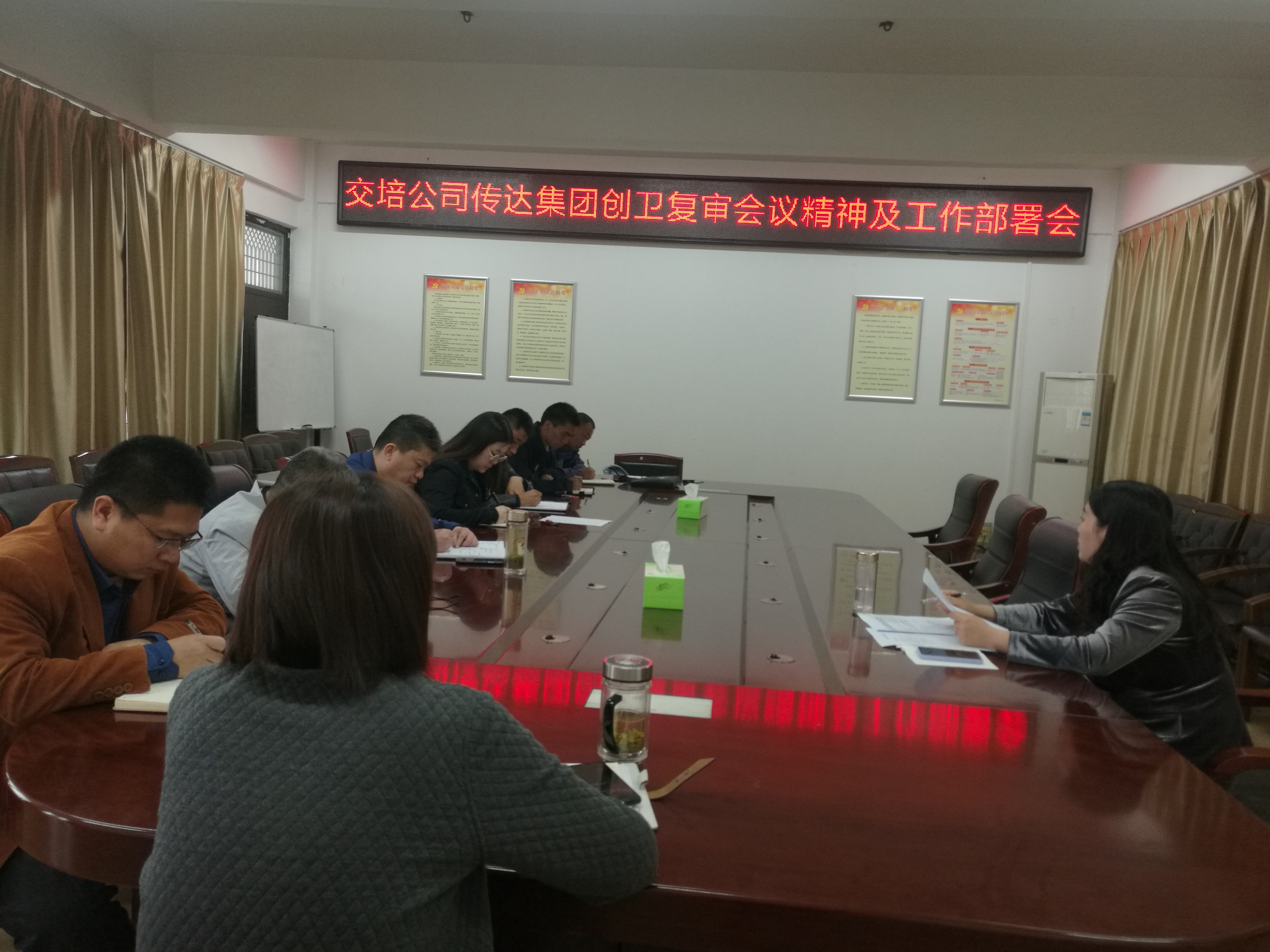 5月12日下午,交培公司召開傳達集團迎接國家衛(wèi)生城市復審工作推進會,會議傳達了集團創(chuàng)衛(wèi)復審工作推進會精神,公司領導、中層干部參加會議。