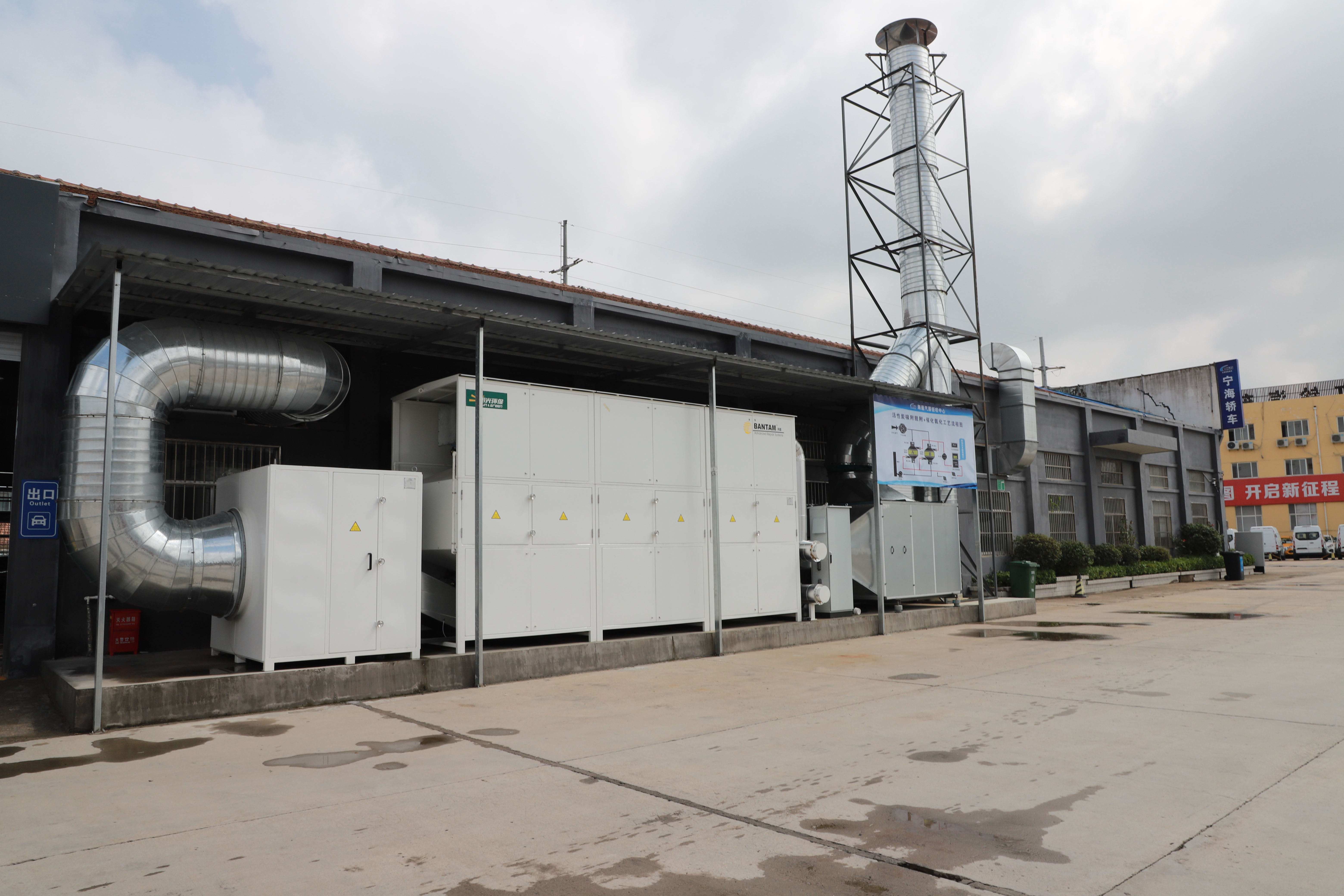 海通汽服公司投入資金100余萬元,將原寧海公司汽車修理廠改建成我市首家綠色環(huán)保汽車鈑噴服務(wù)中心,占地面積約1500平米,擁有13個作業(yè)工位,設(shè)計年產(chǎn)能24000板面,維修車輛可達(dá)6000臺次。設(shè)置2間烤漆房、2間快烤房、3間打磨間,環(huán)保設(shè)施由清華大學(xué)環(huán)境學(xué)院參與設(shè)計安裝,建成鈑噴“綠島”。噴烤漆房廢氣治理采用的活性炭吸附+共享催化氧化的高效處理技術(shù),活性炭飽和后的脫附再生通過“移動脫附車”完成,實現(xiàn)了廢氣處理設(shè)施的可持續(xù)運行。對于汽車噴漆、烤漆產(chǎn)生的廢氣去除效率高于95%,每年可減少揮發(fā)性有機(jī)物(VOCs)排放量約11.4噸。