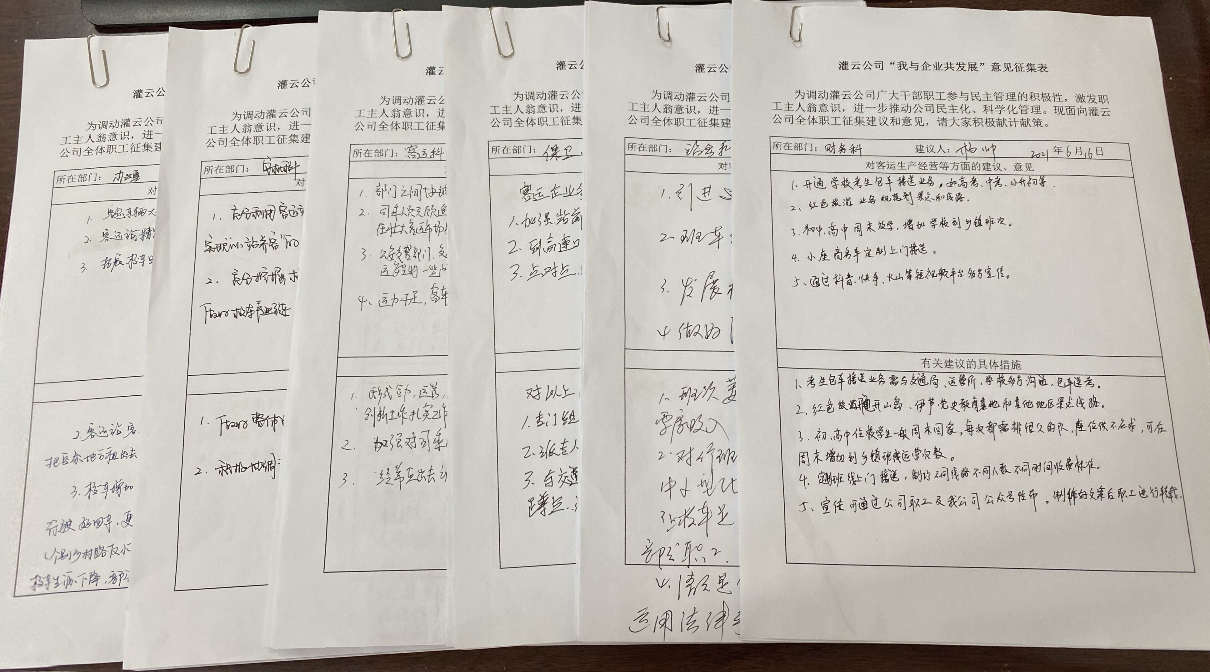 為貫徹落實(shí)汽車(chē)公司轉(zhuǎn)型發(fā)展工作總體思路,提高職工參與企業(yè)管理的工作熱情,牢固樹(shù)立“我與企業(yè)共命運(yùn),我與企業(yè)共發(fā)展”的主體意識(shí),6月15日至18日,連汽灌云公司工會(huì)組織開(kāi)展了“我與企業(yè)共發(fā)展”建議征集活動(dòng)。