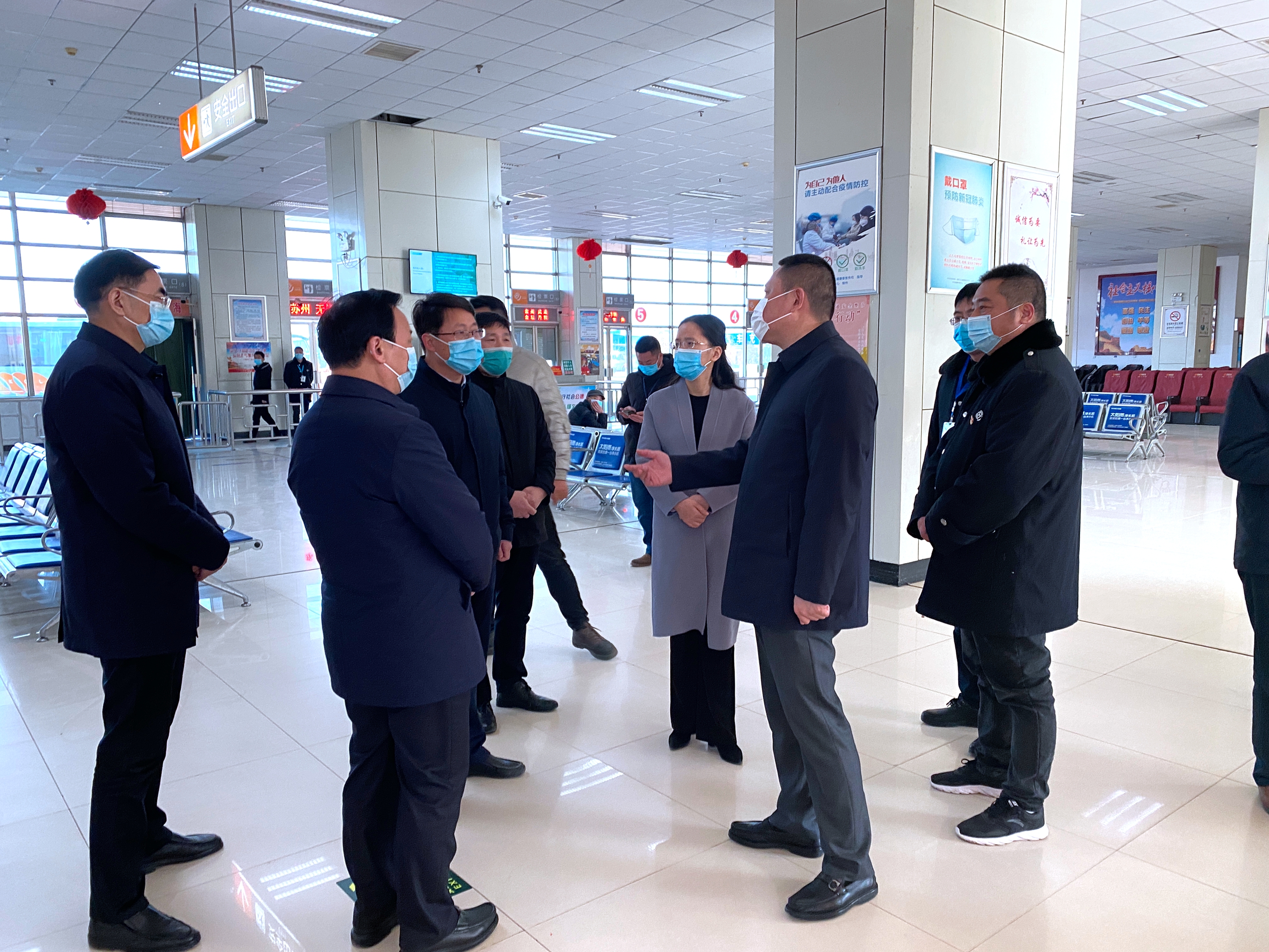 在灌云客運站的候車大廳,蘇鋒詳細(xì)詢問了節(jié)前生產(chǎn)工作和疫情防控落實情況,副經(jīng)理(主持)高兵一一作了匯報。蘇鋒指出,春運期間,客運站往來人流量大、防控任務(wù)重,要不折不扣落實好各項防控措施,嚴(yán)格排查篩查,強化聯(lián)防聯(lián)動,加強應(yīng)急值守,確保各環(huán)節(jié)萬無一失,確保全縣人民出行安全。